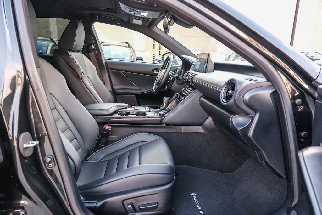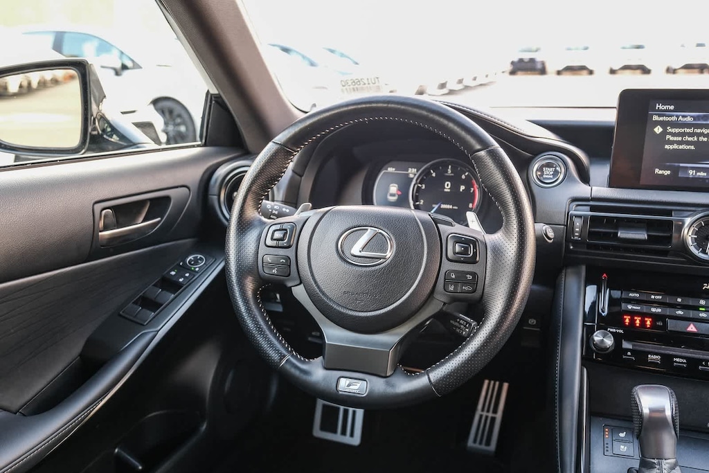 WELCOME TO TOYOTA OF DOWNTOWN LA... CARFAX One-Owner. 2024 Lexus IS Caviar RWD 8-Speed Automatic 3.5L V6 DOHC Dual VVT-i 24V Black w/Perforated NuLuxe Seat Trim (EA), 10 Speakers, 19 Wheels, Apple CarPlay/Android Auto, Auto-dimming door mirrors, Auto-dimming Rear-View mirror, Brake assist, Delay-off headlights, Electronic Stability Control, Exterior Parking Camera Rear, Front dual zone A/C, Front fog lights, Fully automatic headlights, Heated door mirrors, Heated front seats, Illuminated entry, Intuitive Park Assist w/RCTB, Moonroof, Outside temperature display, Panic alarm, Passenger vanity mirror, Perforated NuLuxe Seat Trim, Radio data system, Radio: Multimedia System w/8 Color Touchscreen, Rear reading lights, Rear window defroster, Remote keyless entry, Speed control, Speed-sensing steering, Split folding rear seat, Spoiler, Steering wheel mounted audio controls, Traction control, Turn signal indicator mirrors, Ventilated front seats. 20/28 City/Highway MPG Clean CARFAX.