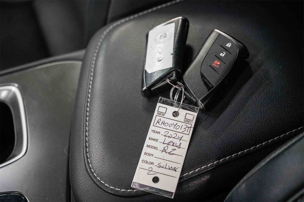 Recent Arrival! Certified. CARFAX One-Owner. 2024 Lexus RZ CERTIFIED Local Trade-n with service records, Just serviced, Extremely Clean Vehicle, Tires in Great Condition, Professionally Detailed, Non-Smoker, Complimentary Maintenance for one (1) year or 15,000 miles, whichever occurs first, 10 Speakers, ABS brakes, Air Conditioning, Alloy wheels, AM/FM radio: SiriusXM, Auto-dimming door mirrors, Automatic temperature control, Bumpers: body-color, Electronic Stability Control, Four wheel independent suspension, Front dual zone A/C, Heated door mirrors, Heated Front Bucket Seats, Heated front seats, Illuminated entry, Low tire pressure warning, Memory seat, Navigation System, Power door mirrors, Power driver seat, Power Liftgate, Power steering, Power windows, Radio data system, Radio: Lexus Interface, Remote keyless entry, Speed-sensing steering, Spoiler, Steering wheel memory, Steering wheel mounted audio controls, Traction control, Turn signal indicator mirrors. L/Certified Details: