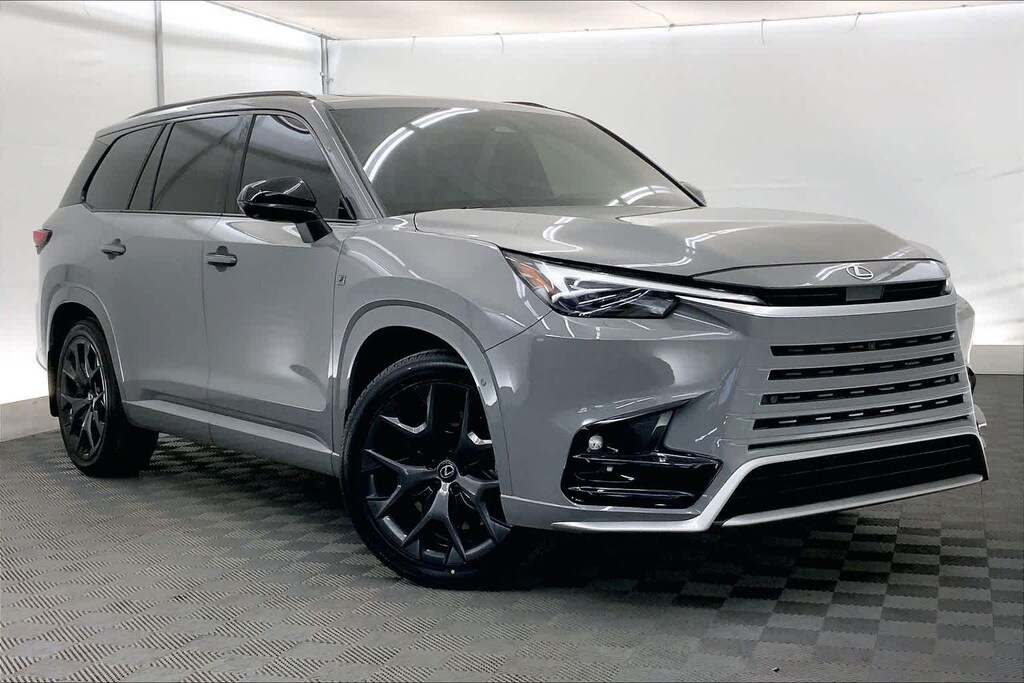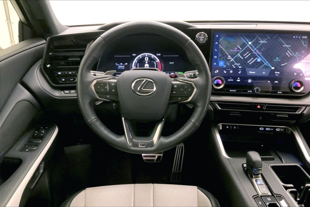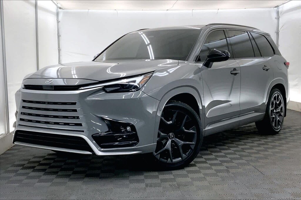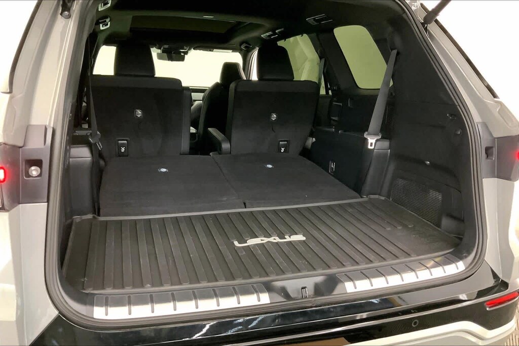 CARFAX One-Owner. 2024 Lexus TX AWD 6-Speed Automatic 2.4L I4 PDI Hybrid Turbocharged DOHC 16V 2.4L I4 PDI Hybrid Turbocharged DOHC 16V, 3rd row seats: split-bench, 4-Wheel Disc Brakes, ABS brakes, Adaptive suspension, Air Conditioning, Alloy wheels, AM/FM radio, Apple CarPlay/Android Auto, Auto High-beam Headlights, Auto tilt-away steering wheel, Auto-dimming door mirrors, Auto-dimming Rear-View mirror, Automatic temperature control, Brake assist, Bumpers: body-color, Delay-off headlights, Driver door bin, Driver vanity mirror, Dual front impact airbags, Dual front side impact airbags, Electronic Stability Control, Emergency communication system: Safety Connect (10-year trial), Exterior Parking Camera Rear, Four wheel independent suspension, Front anti-roll bar, Front Bucket Seats, Front Center Armrest, Front dual zone A/C, Front fog lights, Front reading lights, Fully automatic headlights, Garage door transmitter: HomeLink, Heated & Ventilated Front Captain Seats, Heated door mirrors, Heated front seats, Heated rear seats, Illuminated entry, Knee airbag, Leather Shift Knob, Leather steering wheel, Low tire pressure warning, Memory seat, Navigation system: Drive Connect Cloud Navigation (subscription required), Occupant sensing airbag, Outside temperature display, Overhead airbag, Panic alarm, Passenger door bin, Passenger vanity mirror, Power door mirrors, Power driver seat, Power Liftgate, Power passenger seat, Power steering, Power windows, Radio data system, Rain sensing wipers, Rear air conditioning, Rear anti-roll bar, Rear reading lights, Rear window defroster, Rear window wiper, Reclining 3rd row seat, Remote keyless entry, Security system, Speed control, Speed-sensing steering, Split folding rear seat, Spoiler, Steering wheel memory, Steering wheel mounted audio controls, TBD Axle Ratio, Telescoping steering wheel, Tilt steering wheel, Traction control, Trip computer, Turn signal indicator mirrors, Variably intermittent wipers, Ventilated front seats, Ventilated rear seats, Wheels: 22 F SPORT, 2.4L I4 PDI Hybrid Turbocharged DOHC 16V.