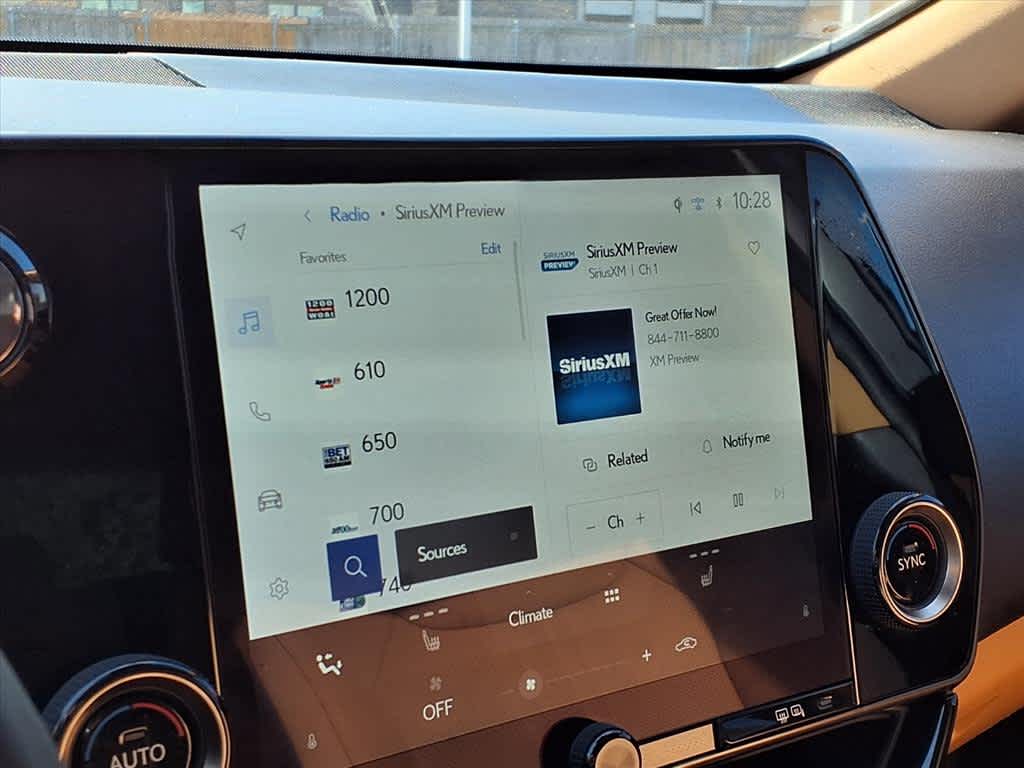 10 Speakers, 4-Wheel Disc Brakes, ABS brakes, Air Conditioning, Alloy wheels, AM/FM radio: SiriusXM, Auto High-beam Headlights, Auto-dimming door mirrors, Auto-dimming Rear-View mirror, Automatic temperature control, Brake assist, Bumpers: body-color, Delay-off headlights, Driver door bin, Driver vanity mirror, Dual front impact airbags, Dual front side impact airbags, Electronic Stability Control, Emergency communication system: Safety Connect (up to 10-year trial subscription included), Exterior Parking Camera Rear, Four wheel independent suspension, Front anti-roll bar, Front Bucket Seats, Front Center Armrest, Front dual zone A/C, Front fog lights, Front reading lights, Fully automatic headlights, Garage door transmitter: HomeLink, Heated door mirrors, Heated Front Bucket Seats, Heated front seats, Illuminated entry, Knee airbag, Leather Shift Knob, Leather steering wheel, Low tire pressure warning, Navigation system: Drive Connect Cloud Navigation (subscription required), NuLuxe Seat Trim, Occupant sensing airbag, Outside temperature display, Overhead airbag, Overhead console, Panic alarm, Passenger door bin, Passenger vanity mirror, Power door mirrors, Power driver seat, Power Liftgate, Power passenger seat, Power steering, Power windows, Radio data system, Radio: 10-Speaker Lexus Premium Sound, Rain sensing wipers, Rear anti-roll bar, Rear reading lights, Rear seat center armrest, Rear window defroster, Rear window wiper, Remote keyless entry, Security system, Speed control, Speed-sensing steering, Speed-Sensitive Wipers, Split folding rear seat, Spoiler, Steering wheel mounted audio controls, Tachometer, Telescoping steering wheel, Tilt steering wheel, Traction control, Trip computer, Turn signal indicator mirrors, Variably intermittent wipers, Wheels: 18 Alloy w/Dark Gray Met & Machined Finish, Wireless Apple CarPlay/Wireless Android Auto.