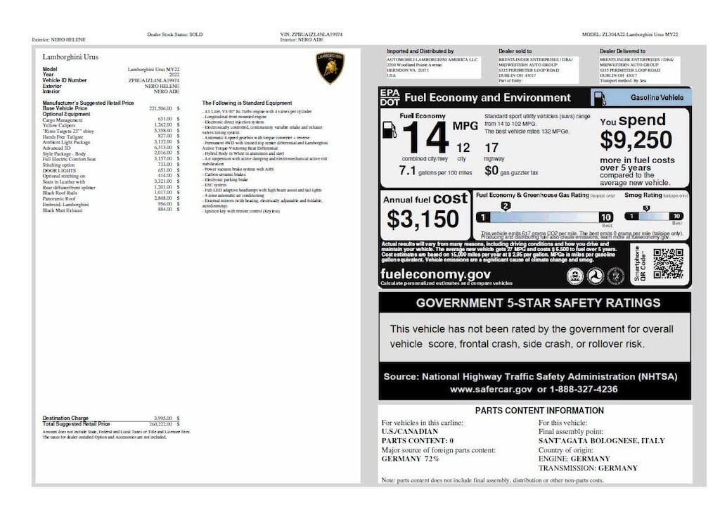 Nero Noctis 2022 Lamborghini Urus AWD 8-Speed Automatic V8