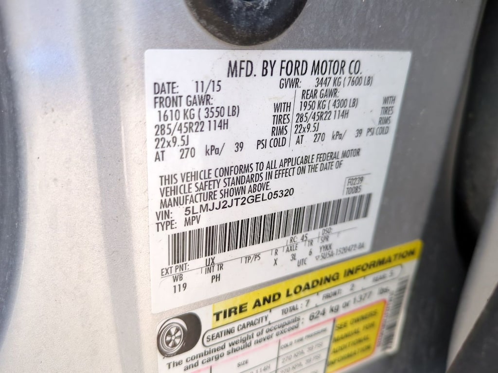 2016 Lincoln Navigator Select Is nicely equipped with Equipment Group 200A Select, 4WD, Ebony Leather, Navigation System, 14 Speakers, 1st & 2nd Row Ebony All-Weather Floor Mats, 2nd Row Heated Seats (DISC), 3.73 Rear Axle Ratio, 3rd row seats: split-bench, 4-Wheel Disc Brakes, ABS brakes, Adjustable pedals, Air Conditioning, Alloy wheels, AM/FM radio: SiriusXM, Auto-dimming door mirrors, Auto-dimming Rear-View mirror, Auto-leveling suspension, Automatic temperature control, Bumpers: body-color, CD player, Compass, Delay-off headlights, Driver door bin, Driver vanity mirror, Dual front impact airbags, Dual front side impact airbags, DVD-Audio, Electronic Stability Control, Emergency communication system: SYNC 3 911 Assist, Exterior Parking Camera Rear, Four wheel independent suspension, Front anti-roll bar, Front Bucket Seats, Front Center Armrest, Front dual zone A/C, Front reading lights, Fully automatic headlights, Garage door transmitter: HomeLink, Genuine wood console insert, Genuine wood dashboard insert, Genuine wood door panel insert, Heated door mirrors, Heated front seats, Heated rear seats, High-Intensity Discharge Headlights, Illuminated entry, Leather steering wheel, Low tire pressure warning, Memory seat, Outside temperature display, Overhead airbag, Overhead console, Panic alarm, Passenger door bin, Passenger vanity mirror, Pedal memory, Power door mirrors, Power driver seat, Power Liftgate, Power Moonroof, Power passenger seat, Power steering, Power windows, Premium audio system: THX II, Premium Leather Low Back Bucket Seats, Radio data system, Radio: HD w/Single CD/DVD Player, Rain sensing wipers, Rear air conditioning, Rear anti-roll bar, Rear audio controls, Rear reading lights, Rear window defroster, Rear window wiper, Reclining 3rd row seat, Remote keyless entry, Roof rack, Security system, SIRIUS Satellite Radio, Speed control, Speed-sensing steering, Speed-Sensitive Wipers, Steering wheel memory, Steering wheel mounted audio controls, SYNC 3 Communications & Entertainment System, Tachometer, Telescoping steering wheel, Tilt steering wheel, Traction control, Trip computer, Turn signal indicator mirrors, Variably intermittent wipers, Ventilated front seats, Wheels: 20" Ultra Brite Machined Aluminum, and Wheels: 22" 20-Spoke Machined-Aluminum.
