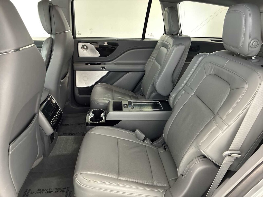 EQUIPMENT GROUP 202A Wheels: 22 Ultra Bright Machined Aluminum, magnetic painted pockets, Tires: 275/40R22 107 W-Rated, Illumination Package, Lincoln Lit Star in Grille, Adaptive Pixel LED Headlamps, adaptive dynamic bending lighting, Lincoln dynamic signature lighting - LED daytime running lamps (sequential fade on/off), speed dependent lighting and wiper-activated headlamps, Panoramic Vista Roof w/Power Shade, Lincoln Co-Pilot360 Plus, Evasive Steering Assist, Reverse Brake Assist, Adaptive Cruise Control w/Traffic Jam Assist, lane centering, stop-and-go and traffic sign recognition, Active Park Assist Plus, Class IV Trailer Tow Package, Blind Spot Detection w/Cross Traffic Alert, trailer coverage, 250 Amps Alternator, Class IV Hitch & Wiring, 4-Pin & 7-Pin Connectors, Trailer Sway, CONVENIENCE PACKAGE Soft Close Doors, Wireless Charging Pad, Head-Up Display, Phone As A Key, TRANSMISSION: 10-SPEED AUTOMATIC W/SELECTSHIFT (STD). Lincoln Reserve with Silver Radiance Clearcoat exterior and Slate Gray interior features a V6 Cylinder Engine with 400 HP at 5500 RPM*.
