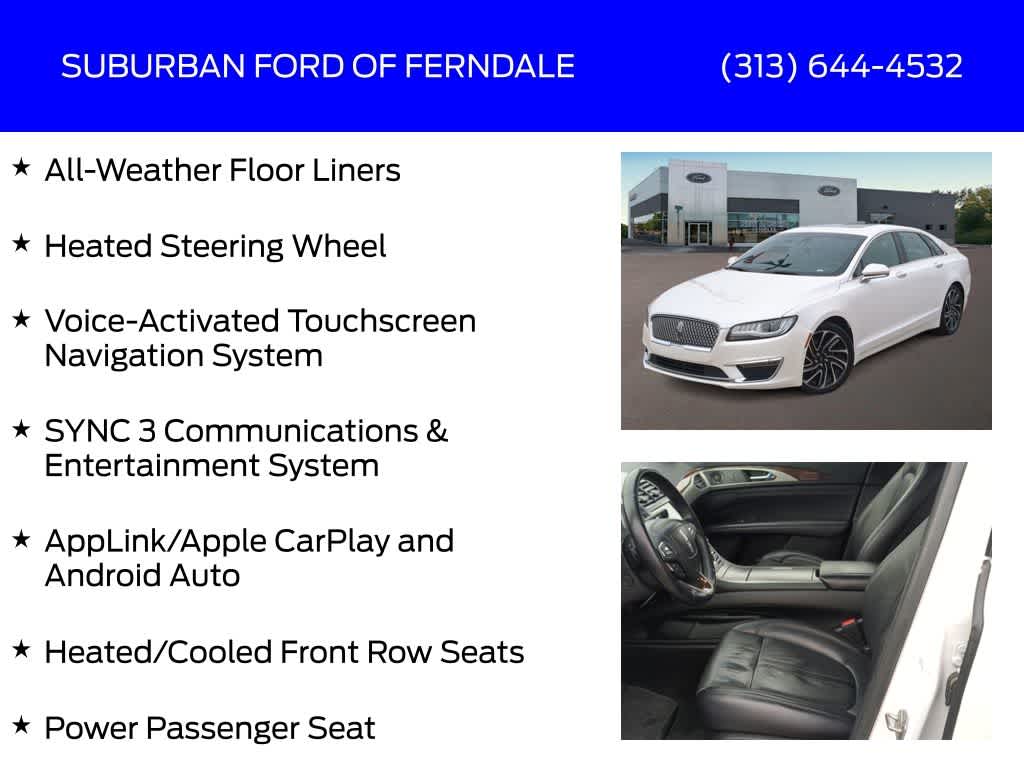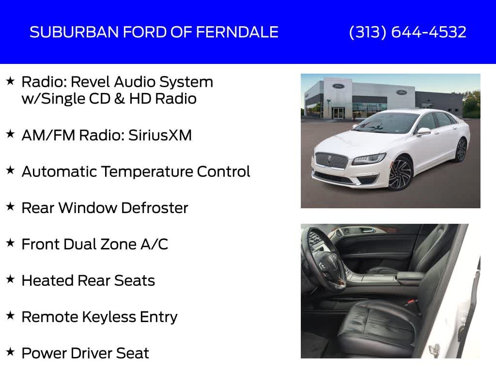 White Platinum Metallic Tri-Coat 2020 Lincoln MKZ Reserve AWD 6-Speed Automatic with Select-Shift 2.0L I4 Clean CarFax, AWD, Adaptive Suspension, All-Weather Floor Liners, AM/FM Radio: SiriusXM, AppLink/Apple CarPlay and Android Auto, Auto High-beam Headlights, Automatic Temperature Control, Elements Package, Equipment Group 200A, Exterior Parking Camera Rear, Front Dual Zone A/C, Fully Automatic Headlights, Heated External Mirrors, Heated Rear Seats, Heated Steering Wheel, Heated/Cooled Front Row Seats, Lincoln Connect, Memory Driver Seating, Navigation System, Power Door Mirrors, Power Driver Seat, Power Moonroof, Power Passenger Seat, Radio: Revel Audio System w/Single CD & HD Radio, Rear Window Defroster, Remote Keyless Entry, SYNC 3 Communications & Entertainment System, Voice-Activated Touchscreen Navigation System, Wheels: 19 Ultra Bright Machined Aluminum.