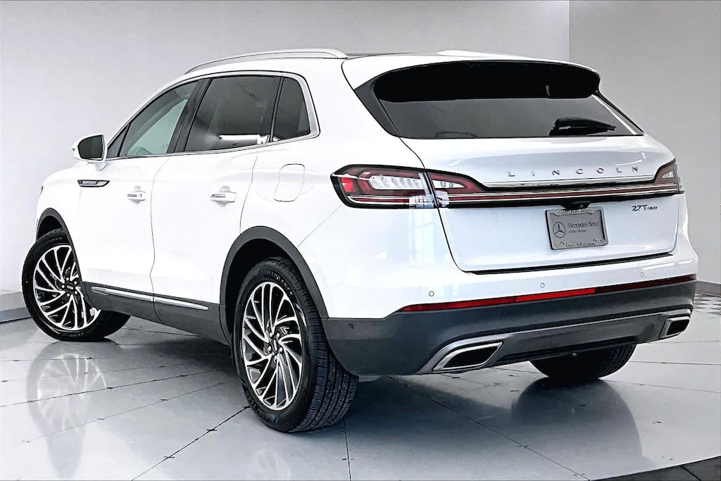 Cargo Accessories and Mat Package (All-Weather Floor Liners, Durable Lightweight Rubber Cargo Mat, and Rear Bumper Anti-Scratch Pad/Load Protector), Equipment Group 201A (Wheels: 20 Prem Painted Std Bright Machined Alum), Lincoln Co-Pilot360 Plus Package (360 Degree Camera, Adaptive Cruise Control, Distance Alert & Distance Indication, Enhanced Active Park Assist, Evasive Steering Assist, and Front Sensing), Nautilus Reserve, 2.7L V6 Twin Turbocharged, Power Liftgate, Power moonroof: Panoramic Vista Roof, Radio: Revel AM/FM/HD Audio System w/Single-CD, SYNC 3 Communications & Entertainment System, Voice-Activated Touchscreen Navigation System, 13 Speakers, 3.80 Axle Ratio, 4-Wheel Disc Brakes, ABS brakes, Adaptive suspension, Air Conditioning, Alloy wheels, AM/FM radio: SiriusXM, AppLink/Apple CarPlay and Android Auto, Auto High-beam Headlights, Auto tilt-away steering wheel, Auto-dimming door mirrors, Auto-dimming Rear-View mirror, Automatic temperature control, Brake assist, Bumpers: body-color, CD player, Compass, Delay-off headlights, Driver door bin, Driver vanity mirror, Dual front impact airbags, Dual front side impact airbags, Electronic Stability Control, Emergency communication system: 911 Assist, Exterior Parking Camera Rear, Four wheel independent suspension, Front anti-roll bar, Front Bucket Seats, Front Center Armrest w/Storage, Front dual zone A/C, Front fog lights, Front reading lights, Fully automatic headlights, Garage door transmitter: HomeLink, Genuine wood console insert, Genuine wood door panel insert, Heated door mirrors, Heated front seats, Heated rear seats, Heated steering wheel, Illuminated entry, Knee airbag, Leather steering wheel, Low tire pressure warning, Memory seat, Navigation System, Occupant sensing airbag, Outside temperature display, Overhead airbag, Overhead console, Panic alarm, Passenger door bin, Passenger vanity mirror, Power door mirrors, Power driver seat, Power passenger seat, Power steering, Power windows, Prem Lthr-Trimmed Heated/Cooled Bucket Seats, Radio data system, Rain sensing wipers, Rear anti-roll bar, Rear reading lights, Rear seat center armrest, Rear window defroster, Rear window wiper, Remote keyless entry, Satin Roof Rack Side Rails w/o Crossbars, Security system, Speed control, Speed-sensing steering, Speed-Sensitive Wipers, Split folding rear seat, Spoiler, Steering wheel memory, Steering wheel mounted A/C controls, Steering wheel mounted audio controls, Tachometer, Telescoping steering wheel, Tilt steering wheel, Traction control, Trip computer, Turn signal indicator mirrors, Variably intermittent wipers, and Ventilated front seats. Local Trade, New Tires, Nautilus Reserve, 2.7L V6 Twin Turbocharged, 360 Degree Camera, Adaptive Cruise Control, All-Weather Floor Liners, Cargo Accessories and Mat Package, Distance Alert & Distance Indication, Durable Lightweight Rubber Cargo Mat, Enhanced Active Park Assist, Equipment Group 201A, Evasive Steering Assist, Front Sensing, Lincoln Co-Pilot360 Plus Package, Power Liftgate, Power moonroof: Panoramic Vista Roof, Radio: Revel AM/FM/HD Audio System w/Single-CD, Rear Bumper Anti-Scratch Pad/Load Protector, SYNC 3 Communications & Entertainment System, Voice-Activated Touchsc