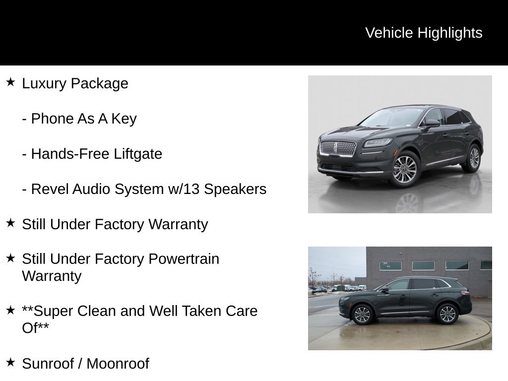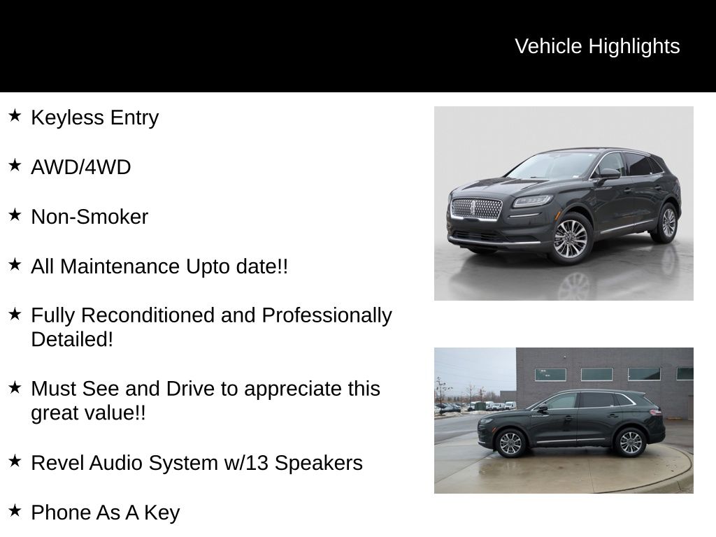 Still Under Factory Warranty, Still Under Factory Powertrain Warranty, **Super Clean and Well Taken Care Of**, Sunroof / Moonroof, Backup Camera, Bluetooth, Hands-Free, Cooled Seats, Leather Seats, Heated Seats, Steering Wheel Controls, Multi-zone Climate Control, Premium Wheels, Keyless Entry, AWD/4WD, Non-Smoker, All Maintenance Upto date!!, Fully Reconditioned and Professionally Detailed!, Must See and Drive to appreciate this great value!!, 360 Degree Camera w/Rear Camera Wash, Active Park Assist 2.0, Adaptive Cruise Control, All-Weather Floor Liners w/o Carpet Mats, Cargo Accessories & Mat Package (43D), Distance Indication & Alert, Durable Lightweight Rubber Cargo Mat, Equipment Group 200A, Evasive Steering Assist, Forward-Side-Rear Parking Sensors, Hands-Free Liftgate, Lincoln Co-Pilot360 1.0 Plus Package, Luxury Package, Phone As A Key, Rear Bumper Anti-Scratch Pad/Load Protector, Revel Audio System w/13 Speakers. Odometer is 6125 miles below market average! 20/25 City/Highway MPG