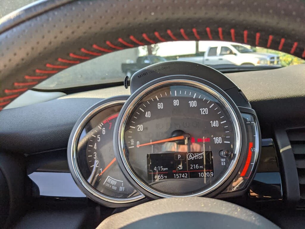 This vehicle is well equipped with many features including: Signature Trim (Active Driving Assistant, Automatic Climate Control, Comfort Access Keyless Entry, JCW Leather Steering Wheel, Panoramic Moonroof, Piano Black Interior Surface, and Wheels: 17 x 7.0 Tentacle Spoke Silver Alloy), 4-Wheel Disc Brakes, 6 Speakers, ABS brakes, Air Conditioning, Alloy wheels, AM/FM radio, AM/FM Stereo, Brake assist, Bumpers: body-color, Delay-off headlights, Driver door bin, Dual front impact airbags, Dual front side impact airbags, Electronic Stability Control, Emergency communication system, Exterior Parking Camera Rear, Four wheel independent suspension, Front Center Armrest w/Storage, Front fog lights, Front reading lights, Fully automatic headlights, Heated door mirrors, Illuminated entry, Knee airbag, Leather steering wheel, Low tire pressure warning, MINI Connected, Occupant sensing airbag, Outside temperature display, Overhead airbag, Overhead console, Power door mirrors, Power steering, Power windows, Radio data system, Rain sensing wipers, Rear window defroster, Rear window wiper, Remote keyless entry, Speed control, Speed-sensing steering, Speed-Sensitive Wipers, Split folding rear seat, Spoiler, Sport Seats, Sport steering wheel, Steering wheel mounted audio controls, Tachometer, Telescoping steering wheel, Tilt steering wheel, Traction control, Variably intermittent wipers, and Wheels: 16 x 6.5 Loop Spoke Silver Alloy.