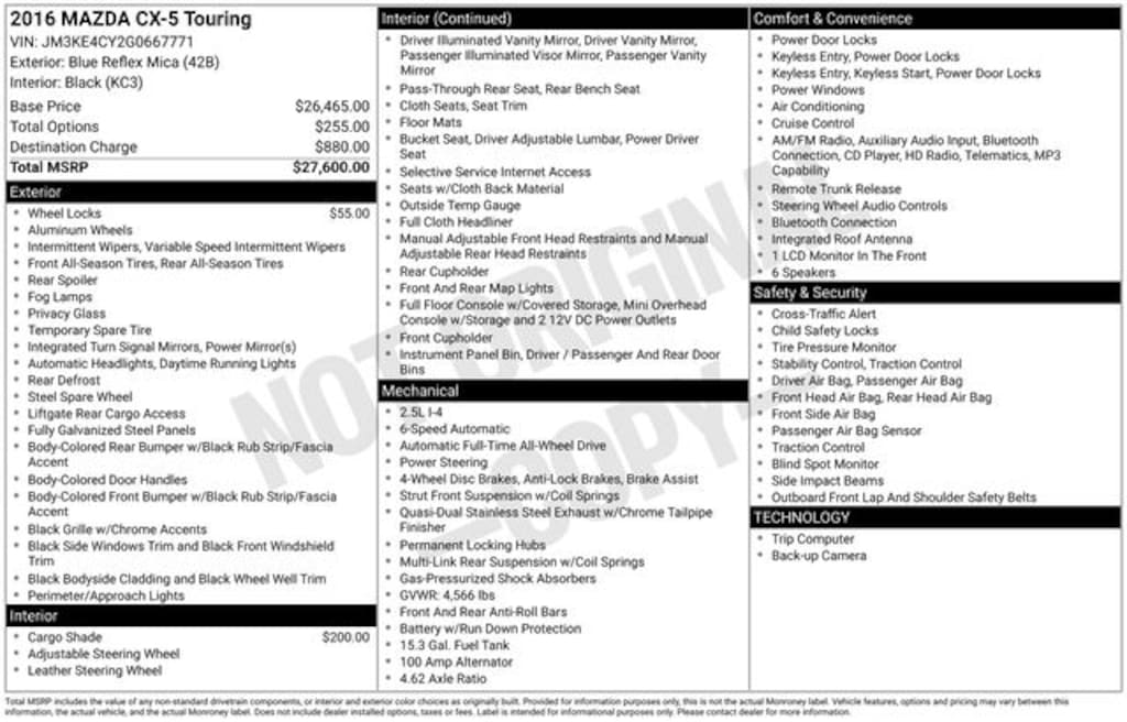 Blue Reflex Mica 2016 Mazda CX-5 Touring 4D Sport Utility AWD 6-Speed Automatic SKYACTIV® 2.5L 4-Cylinder DOHC 16V 24/30 City/Highway MPG