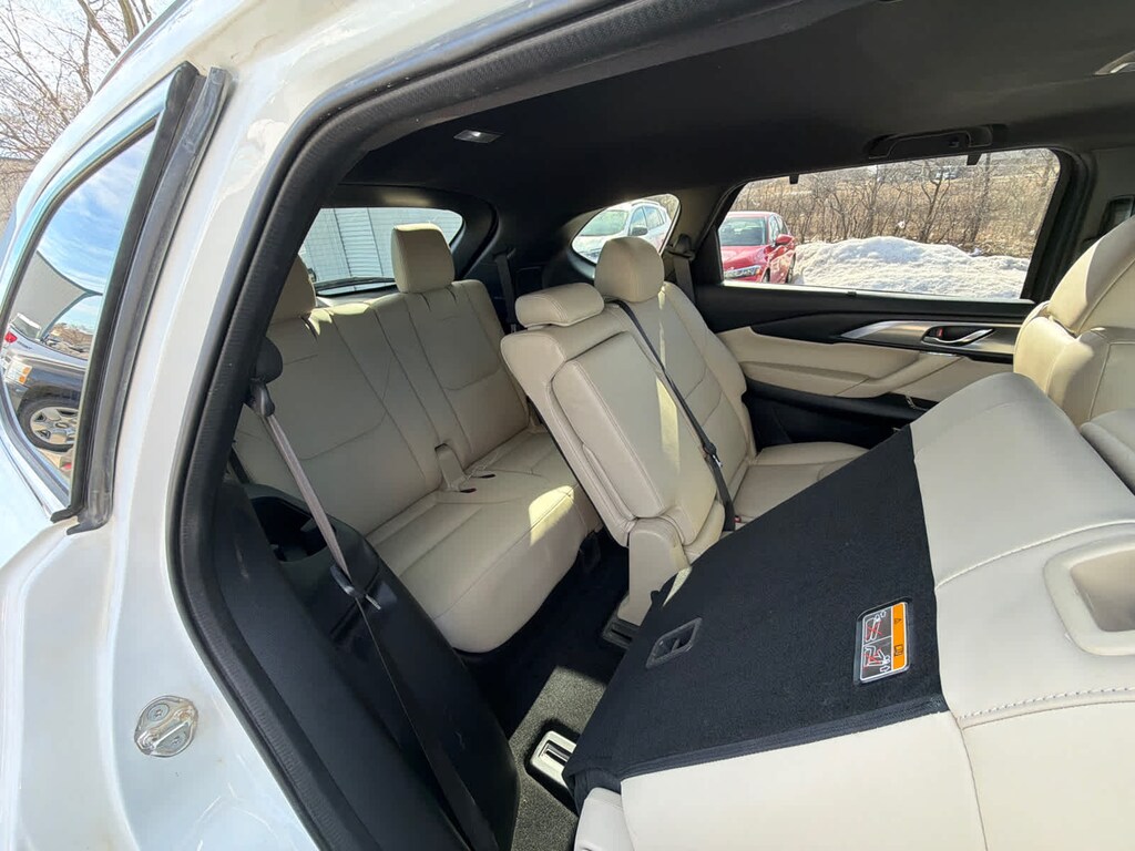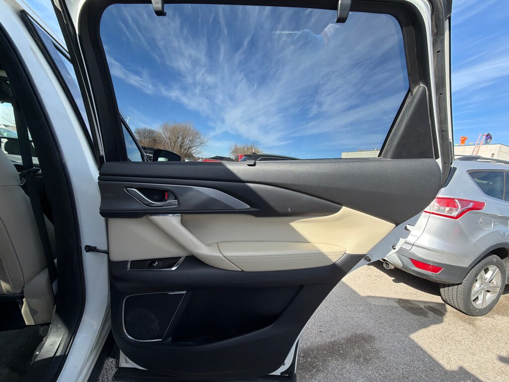 Leather Seats, Third Row Seat, Navigation, Sunroof, All Wheel Drive, Power Liftgate, Rear Air, Heated Driver Seat, Back-Up Camera, Turbocharged, Premium Sound System, Satellite Radio, iPod/MP3 Input, Onboard Communications System, Aluminum Wheels. Rear Spoiler, MP3 Player, Keyless Entry, Privacy Glass, Remote Trunk Release. Mazda CX-9 Grand Touring with Snowflake White Pearl Mica exterior and Sand interior features a 4 Cylinder Engine with 227 HP at 5000 RPM*.