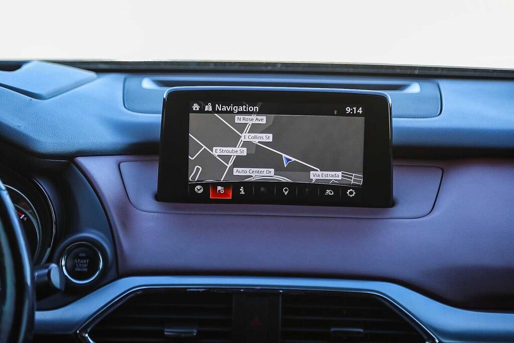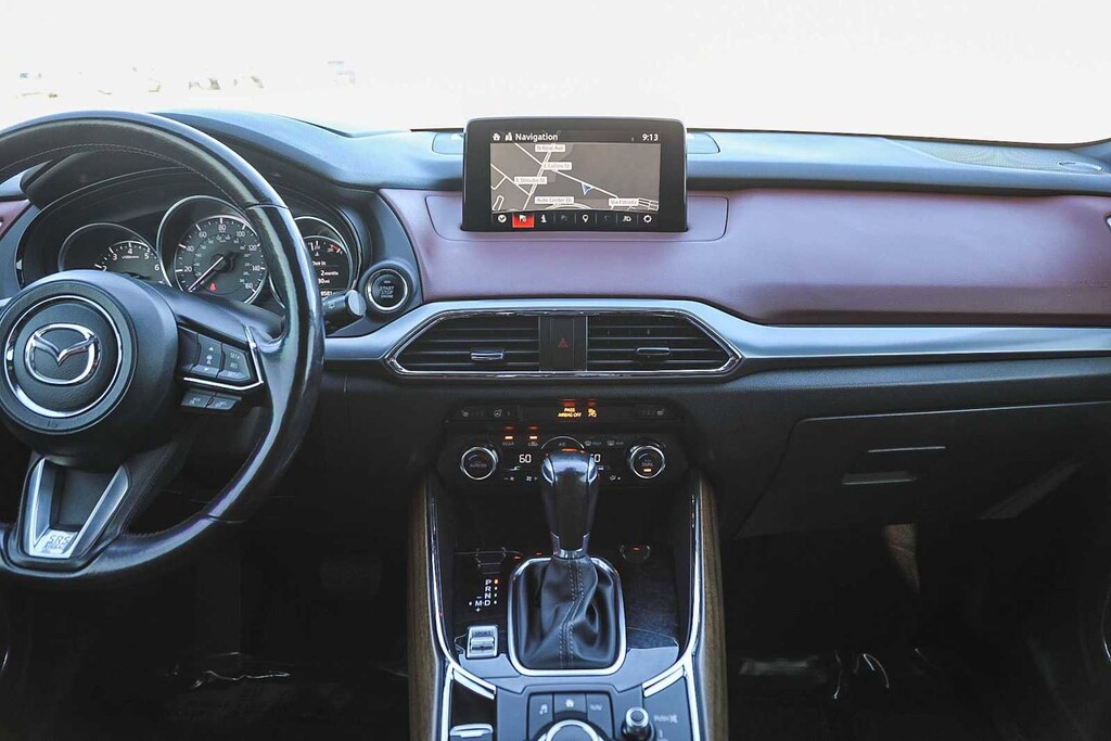 Leather Seats, Third Row Seat, Navigation, Sunroof, All Wheel Drive, Power Liftgate, Rear Air, Heated Driver Seat, Heated Rear Seat, Back-Up Camera, Turbocharged, Premium Sound System, Satellite Radio, iPod/MP3 Input, Onboard Communications System. Rear Spoiler, MP3 Player, Remote Trunk Release, Privacy Glass, Keyless Entry. Mazda CX-9 Signature with Machine Gray Metallic exterior and Auburn interior features a 4 Cylinder Engine with 227 HP at 5000 RPM*.