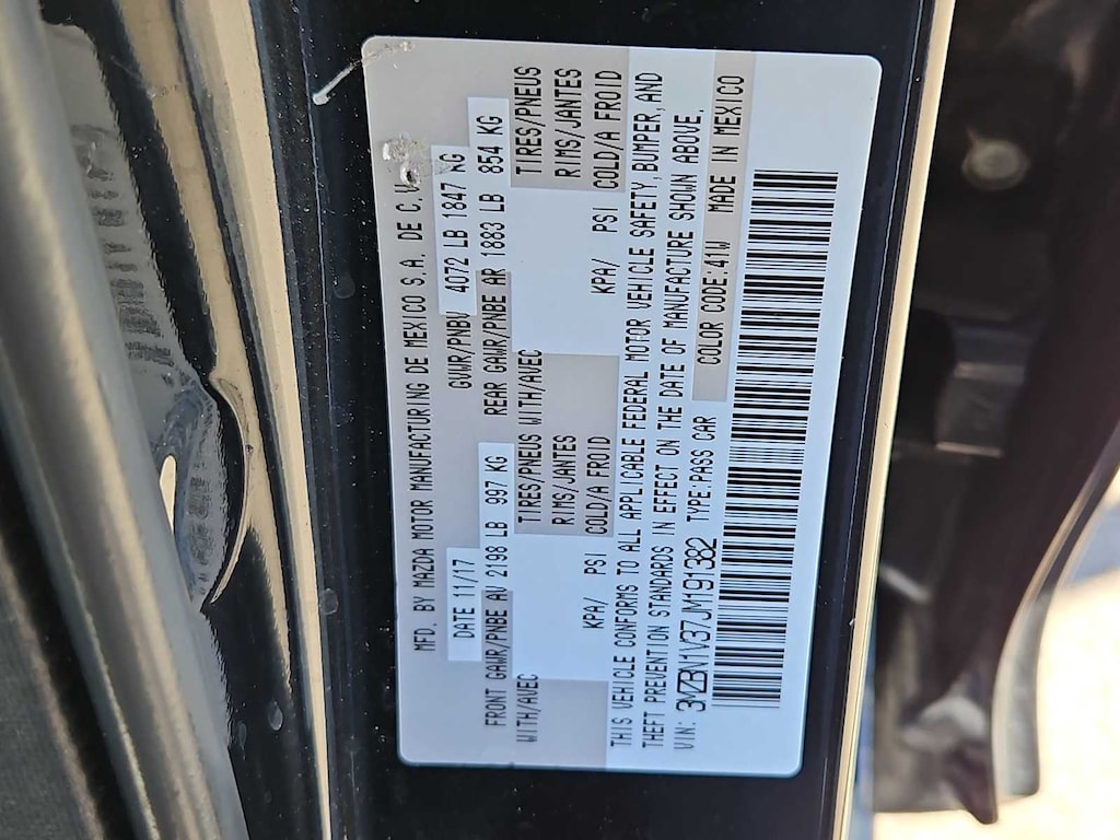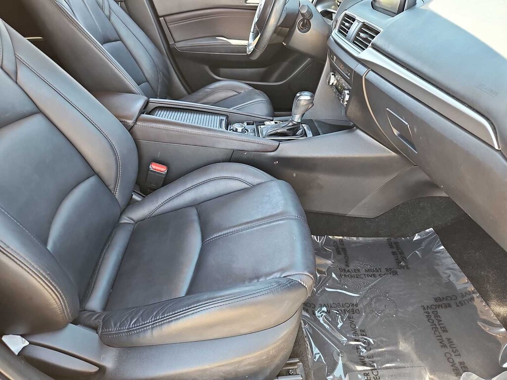 4-Wheel Disc Brakes, 6 Speakers, ABS brakes, Air Conditioning, Alloy wheels, AM/FM radio, Automatic temperature control, Brake assist, Bumpers: body-color, Driver door bin, Driver vanity mirror, Dual front impact airbags, Dual front side impact airbags, Electronic Stability Control, Emergency communication system: MAZDA CONNECT, Exterior Parking Camera Rear, Four wheel independent suspension, Front anti-roll bar, Front Bucket Seats, Front Center Armrest, Front dual zone A/C, Front reading lights, Fully automatic headlights, Heated door mirrors, Heated front seats, Illuminated entry, Leather Shift Knob, Leatherette Seat Trim, Low tire pressure warning, Occupant sensing airbag, Outside temperature display, Overhead airbag, Overhead console, Panic alarm, Passenger door bin, Passenger vanity mirror, Power door mirrors, Power driver seat, Power steering, Power windows, Radio data system, Radio: AM/FM/HD Audio System, Rain sensing wipers, Rear anti-roll bar, Rear seat center armrest, Rear window defroster, Remote keyless entry, Speed control, Speed-sensing steering, Split folding rear seat, Spoiler, Steering wheel mounted audio controls, Tachometer, Telescoping steering wheel, Tilt steering wheel, Traction control, Trip computer, Turn signal indicator mirrors, Variable Heated Reclining Front Bucket Seats, Variably intermittent wipers, Wheels: 18 x 7.0J Dark Silver Finish Alloy.