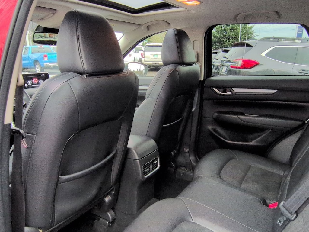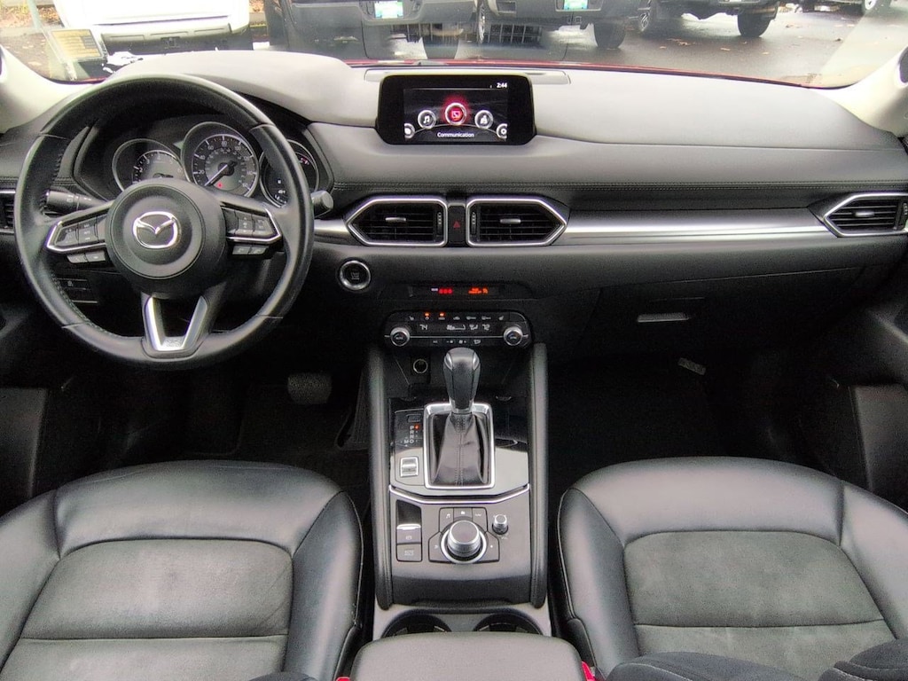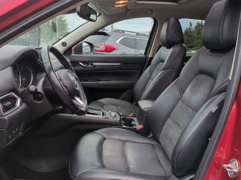 4-Wheel Disc Brakes, 4.624 Axle Ratio, 6 Speakers, ABS brakes, Air Conditioning, Alloy wheels, AM/FM radio, AppLink/Apple CarPlay and Android Auto, Auto Dimming Rearview Mirror w/HomeLink, Auto High-beam Headlights, Automatic temperature control, Bose 10-Speaker Audio Sound System, Brake assist, Bumpers: body-color, Delay-off headlights, Driver door bin, Driver vanity mirror, Dual front impact airbags, Dual front side impact airbags, Electronic Stability Control, Emergency communication system, Exterior Parking Camera Rear, Four wheel independent suspension, Front anti-roll bar, Front Bucket Seats, Front Center Armrest, Front dual zone A/C, Front reading lights, Fully automatic headlights, Heated front seats, Heated Front Sport Seats, Illuminated entry, Leather Shift Knob, Leatherette Seat Trim, Low tire pressure warning, Occupant sensing airbag, Outside temperature display, Overhead airbag, Overhead console, Panic alarm, Passenger door bin, Passenger vanity mirror, Power door mirrors, Power driver seat, Power Rear Liftgate, Power Sliding-Glass Moonroof w/Interior Sunshade, Power steering, Power windows, Radio data system, Radio: AM/FM/HD Audio System, Rain sensing wipers, Rear anti-roll bar, Rear reading lights, Rear seat center armrest, Rear window defroster, Rear window wiper, Remote keyless entry, Soul Red Crystal Metallic Paint, Speed control, Speed-sensing steering, Split folding rear seat, Spoiler, Steering wheel mounted audio controls, Tachometer, Telescoping steering wheel, Tilt steering wheel, Touring Preferred Equipment Package, Traction control, Trip computer, Turn signal indicator mirrors, Variably intermittent wipers, Wheels: 17 x 7J Gray Metallic Alloy. Soul Red Crystal Metallic 2019 Mazda CX-5 Touring AWD 6-Speed Automatic SKYACTIVî 2.5L 4-Cylinder DOHC 16V