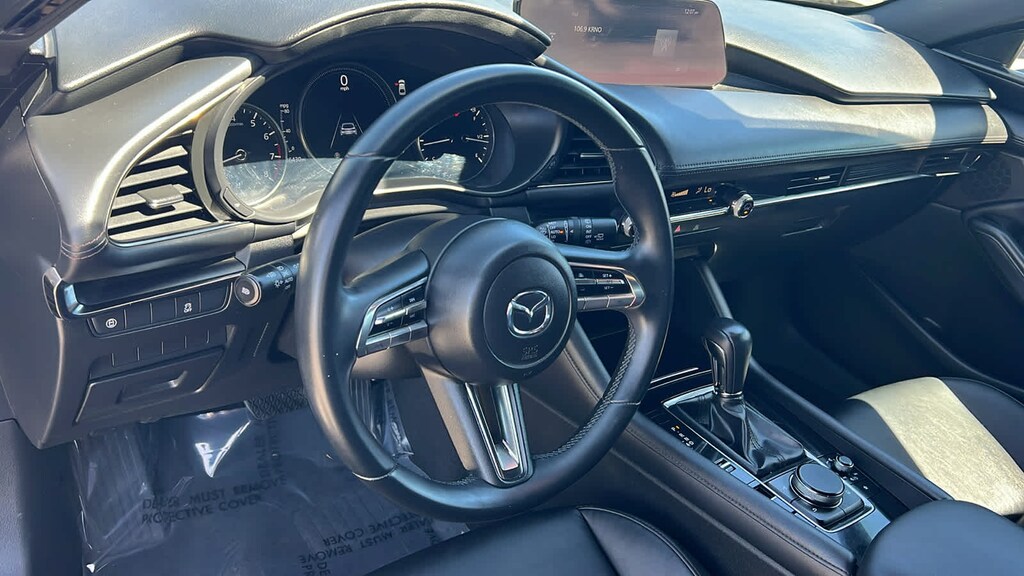 Back-Up Camera, iPod/MP3 Input, Onboard Communications System, Aluminum Wheels, Keyless Start, Dual Zone A/C, WiFi Hotspot, Lane Keeping Assist, Cross-Traffic Alert, Blind Spot Monitor, Smart Device Integration Rear Spoiler, MP3 Player, Keyless Entry, Child Safety Locks, Steering Wheel Controls. Mazda Mazda3 Hatchback with Deep Crystal Blue Mica exterior and Black interior features a 4 Cylinder Engine with 186 HP at 6000 RPM*.
