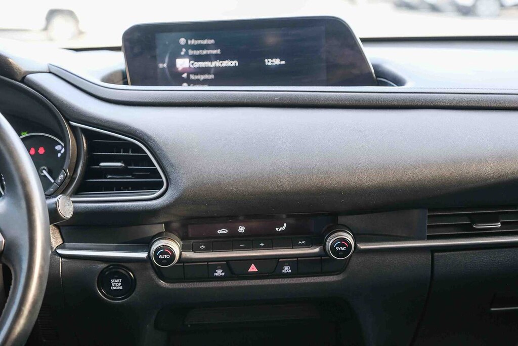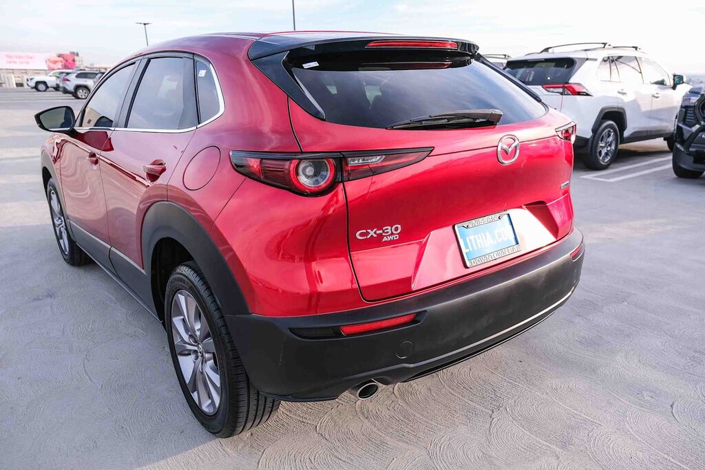 All Wheel Drive, Back-Up Camera, iPod/MP3 Input, Onboard Communications System, Aluminum Wheels, Keyless Start, Dual Zone A/C, Brake Actuated Limited Slip Differential, Smart Device Integration, Blind Spot Monitor, Cross-Traffic Alert, Lane Keeping Assist Rear Spoiler, MP3 Player, Keyless Entry, Privacy Glass, Child Safety Locks. Mazda CX-30 Select with Soul Red Crystal Metallic exterior and Black interior features a 4 Cylinder Engine with 186 HP at 6000 RPM*.