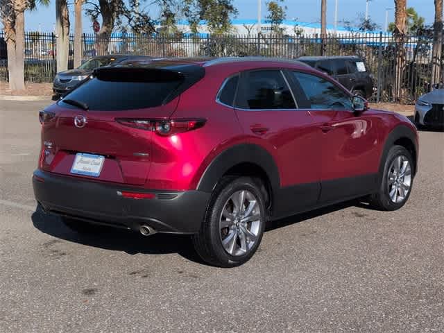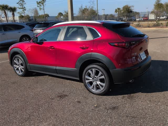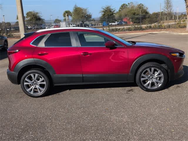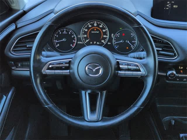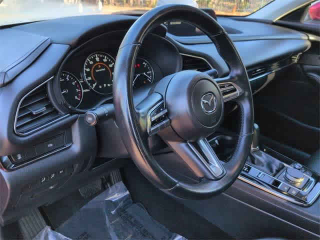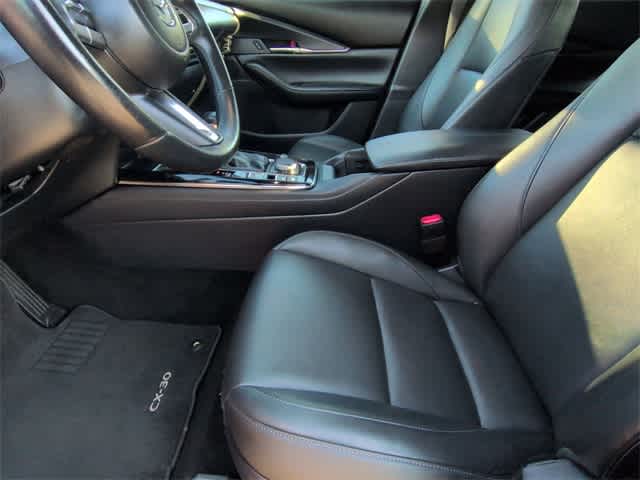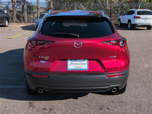 This 2023 Mazda CX-30 2.5 S Preferred Package in Soul Red Crystal Metallic, features 4-Wheel Disc Brakes, 4.095 Axle Ratio, 8 Speakers, ABS brakes, Air Conditioning, Alloy wheels, AM/FM radio, AppLink/Apple CarPlay and Android Auto, Auto High-beam Headlights, Automatic temperature control, Brake assist, Bumpers: body-color, Cargo Tray, Compass, Delay-off headlights, Driver door bin, Driver vanity mirror, Dual front impact airbags, Dual front side impact airbags, Electronic Stability Control, Emergency communication system: Mazda Connected Services (3-year complimentary trial included), Exterior Parking Camera Rear, Front anti-roll bar, Front Bucket Seats, Front Center Armrest, Front dual zone A/C, Front reading lights, Front wheel independent suspension, Fully automatic headlights, Heated Front Bucket Seats, Heated front seats, Illuminated entry, Knee airbag, Leather Shift Knob, Leather steering wheel, Leatherette Seat Trim, Low tire pressure warning, MAZDA CONNECT Infotainment System, Memory seat, Moon Roof Credit, Occupant sensing airbag, Outside temperature display, Overhead airbag, Overhead console, Panic alarm, Passenger door bin, Passenger vanity mirror, Power door mirrors, Power driver seat, Power moonroof, Power steering, Power windows, Radio data system, Radio: AM/FM/HD Audio System, Rain sensing wipers, Rear seat center armrest, Rear side impact airbag, Rear window defroster, Rear window wiper, Remote keyless entry, Soul Red Crystal Metallic Paint, Speed control, Speed-sensing steering, Split folding rear seat, Spoiler, Stainless Steel Rear Bumper Guard, Steering wheel mounted audio controls, Tachometer, Telescoping steering wheel, Tilt steering wheel, Traction control, Trip computer, Turn signal indicator mirrors, Variably intermittent wipers, Wheel Locks, and Wheels: 18 x 7J Aluminum Alloy: