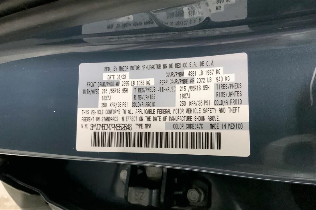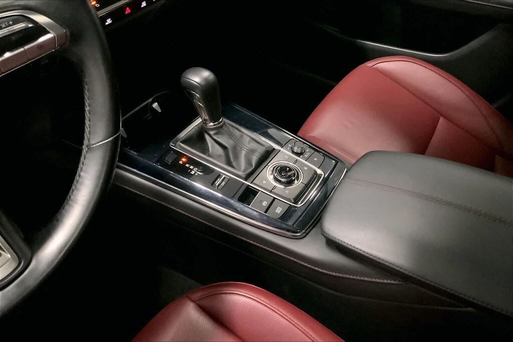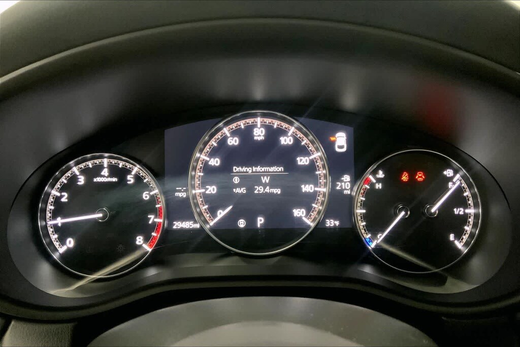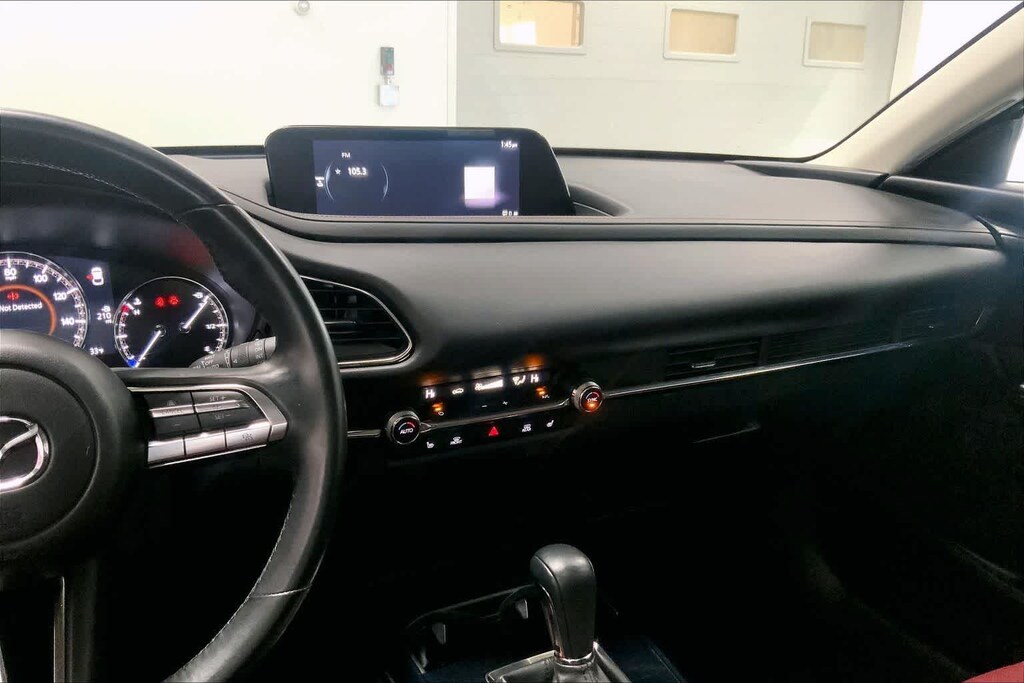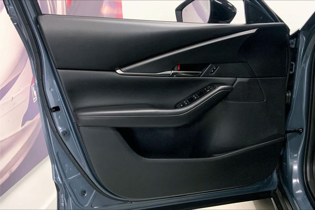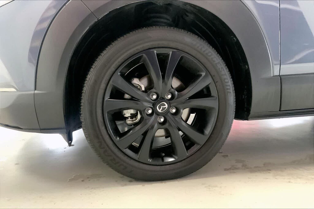CX-30 2.5 S Carbon Edition is nicely equipped with 4-Wheel Disc Brakes, 4.095 Axle Ratio, 8 Speakers, ABS brakes, Air Conditioning, Alloy wheels, AM/FM radio, AppLink/Apple CarPlay and Android Auto, Auto High-beam Headlights, Automatic temperature control, Black Lug Nuts & Black Wheel Locks, Brake assist, Bumpers: body-color, Compass, Delay-off headlights, Driver door bin, Driver vanity mirror, Dual front impact airbags, Dual front side impact airbags, Electronic Stability Control, Emergency communication system: Mazda Connected Services (3-year complimentary trial included), Exterior Parking Camera Rear, Front anti-roll bar, Front Bucket Seats, Front Center Armrest, Front dual zone A/C, Front reading lights, Front wheel independent suspension, Fully automatic headlights, Heated door mirrors, Heated Front Bucket Seats, Heated front seats, Illuminated entry, Knee airbag, Leather Seat Trim, Leather Shift Knob, Leather steering wheel, Low tire pressure warning, MAZDA CONNECT Infotainment System, Memory seat, Occupant sensing airbag, Outside temperature display, Overhead airbag, Overhead console, Panic alarm, Passenger door bin, Passenger vanity mirror, Power door mirrors, Power driver seat, Power moonroof, Power steering, Power windows, Radio data system, Radio: AM/FM/HD Audio System, Rain sensing wipers, Rear seat center armrest, Rear side impact airbag, Rear window defroster, Rear window wiper, Remote keyless entry, Speed control, Speed-sensing steering, Split folding rear seat, Spoiler, Steering wheel mounted audio controls, Tachometer, Telescoping steering wheel, Tilt steering wheel, Traction control, Trip computer, Turn signal indicator mirrors, Variably intermittent wipers, and Wheels: 18 x 7J Aluminum Alloy.