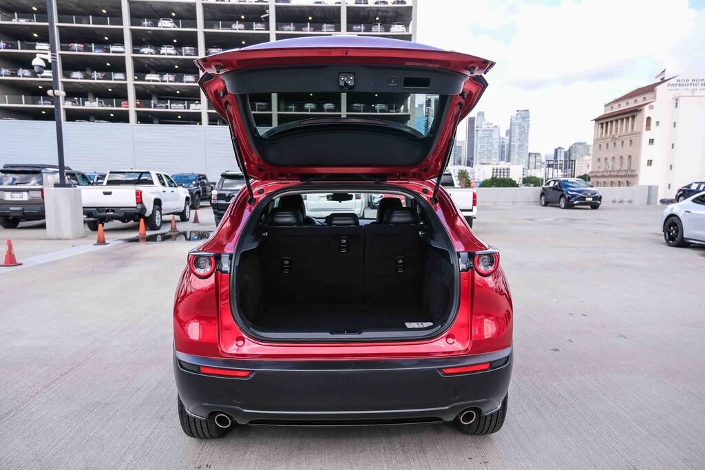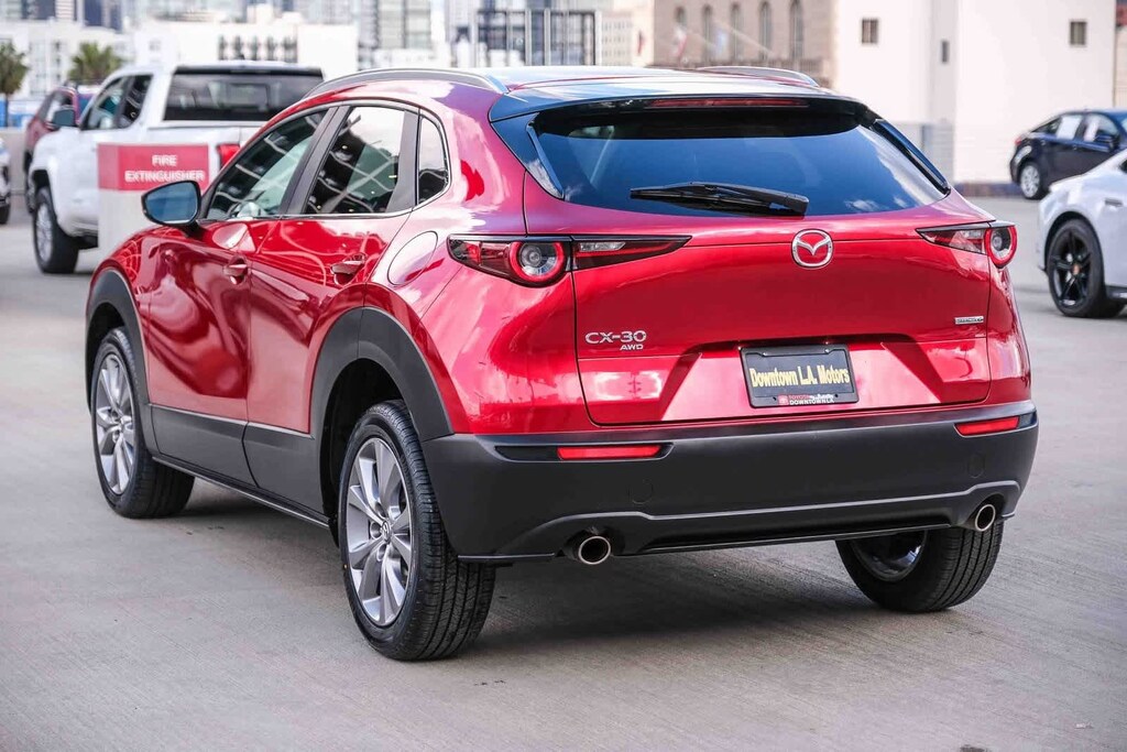 WELCOME TO TOYOTA OF DOWNTOWN LA... CARFAX One-Owner. 2023 Mazda CX-30 2.5 S Preferred Package Soul Red Crystal Metallic AWD 6-Speed Automatic SKYACTIVî 2.5L 4-Cylinder DOHC 16V 8 Speakers, AppLink/Apple CarPlay and Android Auto, Automatic temperature control, Brake assist, Delay-off headlights, Electronic Stability Control, Exterior Parking Camera Rear, Front dual zone A/C, Fully automatic headlights, Heated Front Bucket Seats, Leatherette Seat Trim, MAZDA CONNECT Infotainment System, Moon Roof Credit, Power door mirrors, Power moonroof, Power windows, Soul Red Crystal Metallic Paint, Speed-sensing steering, Split folding rear seat, Spoiler, Traction control, Turn signal indicator mirrors, Wheels: 18 x 7J Aluminum Alloy. 26/33 City/Highway MPG
