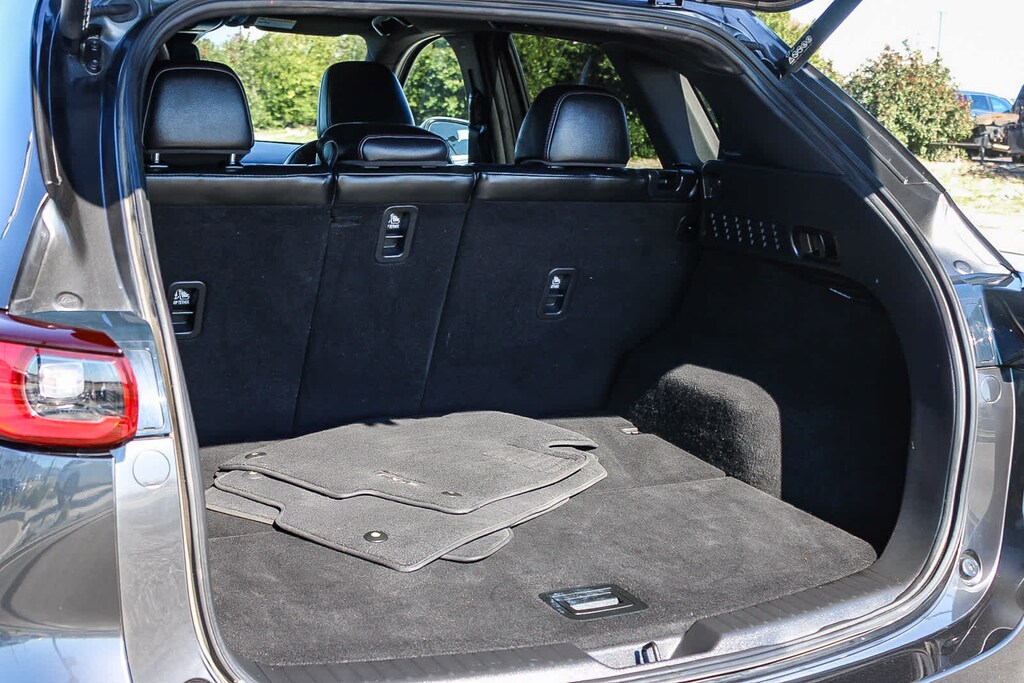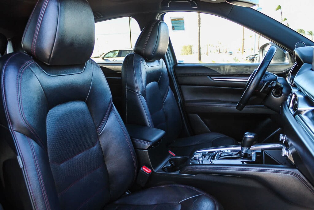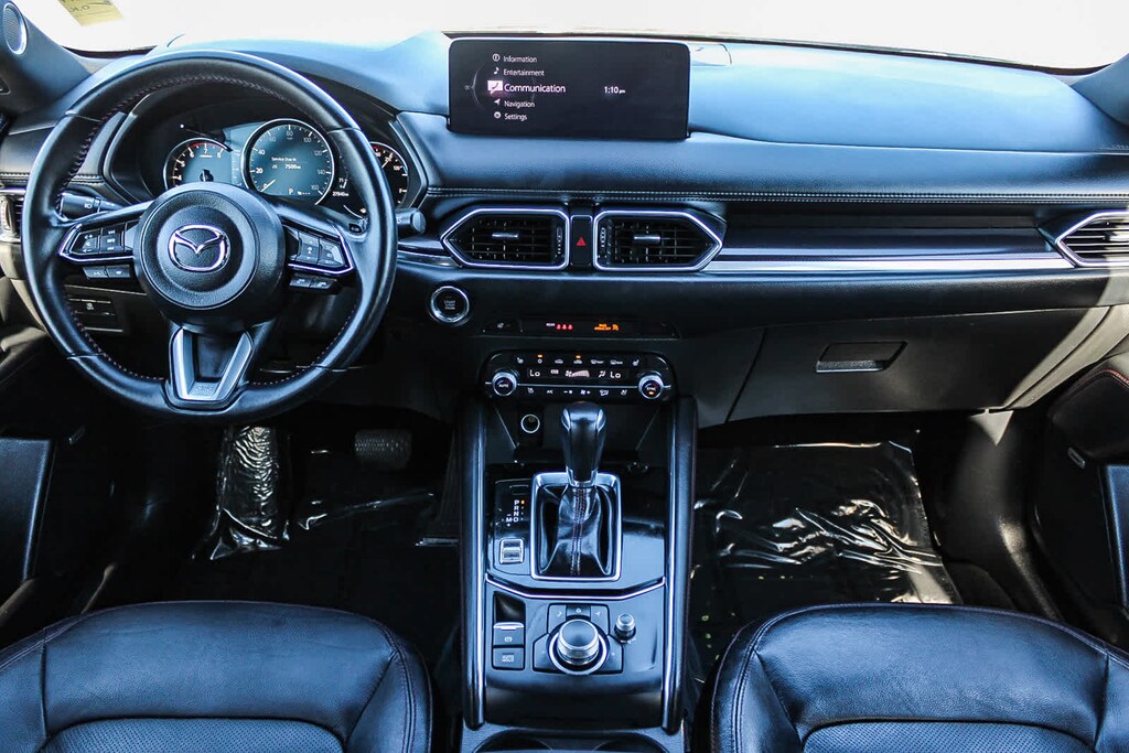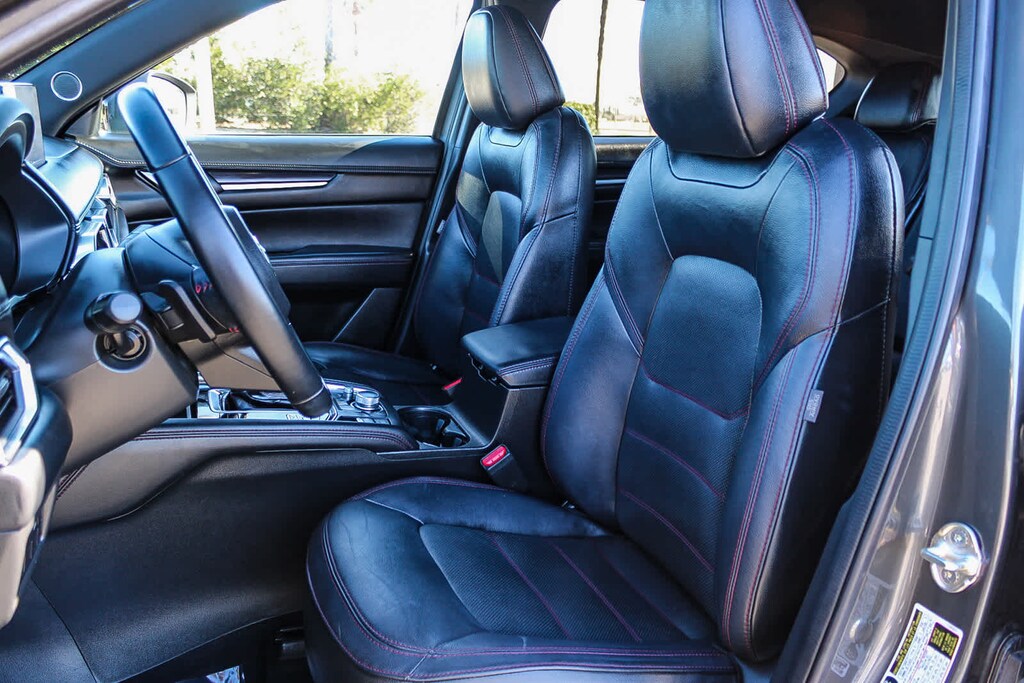 10 Speakers, 4-Wheel Disc Brakes, 4.411 Axle Ratio, ABS brakes, Air Conditioning, Alloy wheels, AM/FM radio: SiriusXM, AppLink/Apple CarPlay and Android Auto, Auto High-beam Headlights, Auto-dimming Rear-View mirror, Automatic temperature control, Brake assist, Bumpers: body-color, Delay-off headlights, Driver door bin, Driver vanity mirror, Dual front impact airbags, Dual front side impact airbags, E911 Automatic Emergency Notification, Electronic Stability Control, Emergency communication system: MAZDA CONNECT, Exterior Parking Camera Rear, Four wheel independent suspension, Front anti-roll bar, Front Bucket Seats, Front Center Armrest w/Storage, Front dual zone A/C, Front reading lights, Fully automatic headlights, Garage door transmitter: HomeLink, Heads-Up Display, Heated door mirrors, Heated front seats, Heated rear seats, Heated steering wheel, Heated/Ventilated Front Bucket Seats, Illuminated entry, Infotainment System Voice Command, Leather Seat Trim, Leather Shift Knob, Low tire pressure warning, Machine Gray Metallic Paint, Memory seat, Multifunction Commander Control, Occupant sensing airbag, Outside temperature display, Overhead airbag, Overhead console, Pandora, Panic alarm, Passenger door bin, Passenger vanity mirror, Power door mirrors, Power driver seat, Power Liftgate, Power moonroof, Power passenger seat, Power steering, Power windows, Radio Broadcast Data System Program Information, Radio data system, Radio: AM/FM/HD Audio System, Rain sensing wipers, Rear anti-roll bar, Rear reading lights, Rear seat center armrest, Rear window defroster, Rear window wiper, Remote keyless entry, SMS Text Msg Audio Delivery & Reply, Speed control, Speed-sensing steering, Split folding rear seat, Spoiler, Steering wheel mounted audio controls, Tachometer, Telescoping steering wheel, Tilt steering wheel, Traction control, Trip computer, Turn signal indicator mirrors, Variably intermittent wipers, Ventilated front seats, and Wheels: 19 x 7J Aluminum Alloy. 2.5L I4 6-Speed Automatic AWD