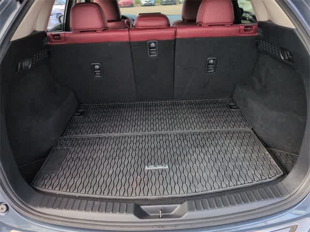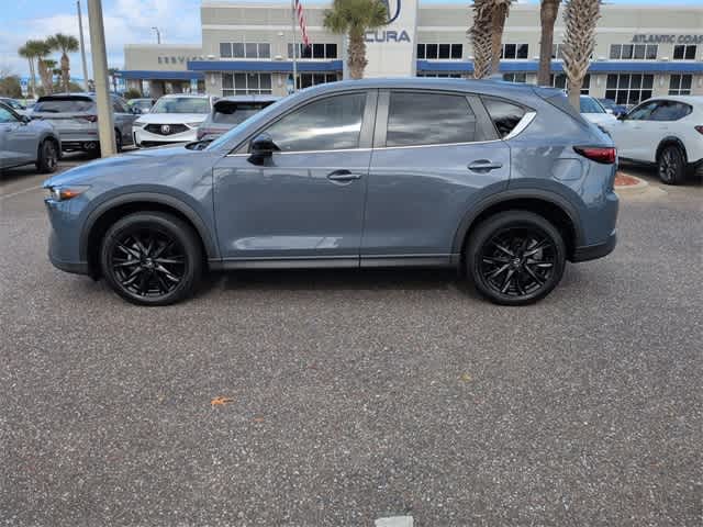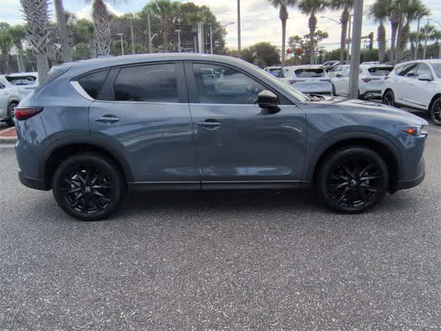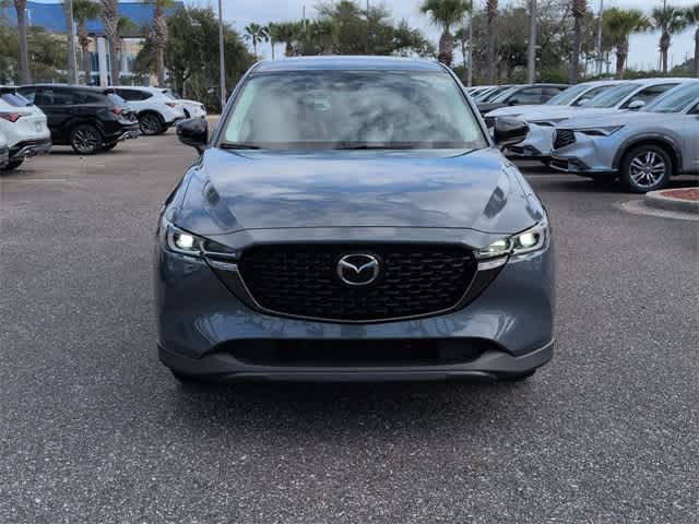 This 2023 Mazda CX-5 2.5 S Carbon Edition in Polymetal Gray, features 10 Speakers, 4-Wheel Disc Brakes, 4.624 Axle Ratio, ABS brakes, Air Conditioning, All-Weather Floor Mats, Alloy wheels, AM/FM radio, AppLink/Apple CarPlay and Android Auto, Auto High-beam Headlights, Auto-dimming Rear-View mirror, Automatic temperature control, Black Lug Nuts & Black Wheel Locks, Brake assist, Bumpers: body-color, Delay-off headlights, Driver door bin, Driver vanity mirror, Dual front impact airbags, Dual front side impact airbags, E911 Automatic Emergency Notification, Electronic Stability Control, Emergency communication system: MAZDA CONNECT, Exterior Parking Camera Rear, Four wheel independent suspension, Front anti-roll bar, Front Bucket Seats, Front Center Armrest w/Storage, Front dual zone A/C, Front reading lights, Fully automatic headlights, Garage door transmitter: HomeLink, Heated Front Bucket Seats, Heated front seats, Illuminated entry, Infotainment System Voice Command, Leather Seat Trim, Leather Shift Knob, Low tire pressure warning, Memory seat, Multifunction Commander Control, Occupant sensing airbag, Outside temperature display, Overhead airbag, Overhead console, Pandora, Panic alarm, Passenger door bin, Passenger vanity mirror, Power door mirrors, Power driver seat, Power Liftgate, Power moonroof, Power passenger seat, Power steering, Power windows, Radio Broadcast Data System Program Information, Radio data system, Radio: AM/FM/HD Audio System, Rain sensing wipers, Rear anti-roll bar, Rear Bumper Guard, Rear reading lights, Rear seat center armrest, Rear window defroster, Rear window wiper, Remote keyless entry, SMS Text Msg Audio Delivery & Reply, Speed control, Speed-sensing steering, Split folding rear seat, Spoiler, Steering wheel mounted audio controls, Tachometer, Telescoping steering wheel, Tilt steering wheel, Traction control, Trip computer, Turn signal indicator mirrors, Variably intermittent wipers, and Wheels: 19 x 7J Aluminum Alloy:
