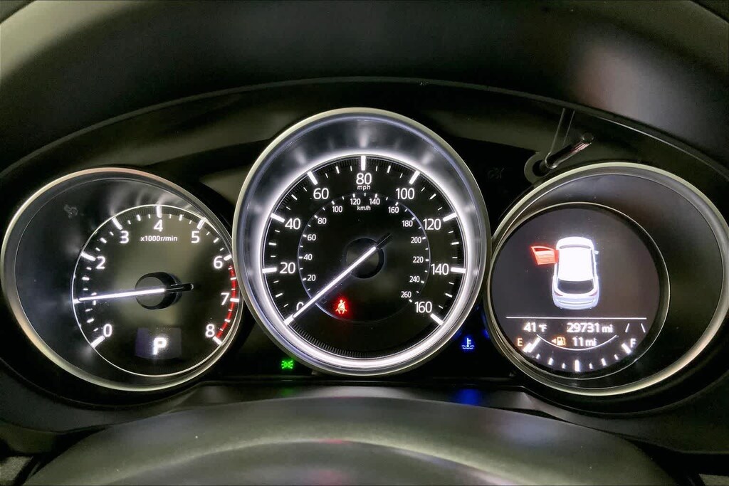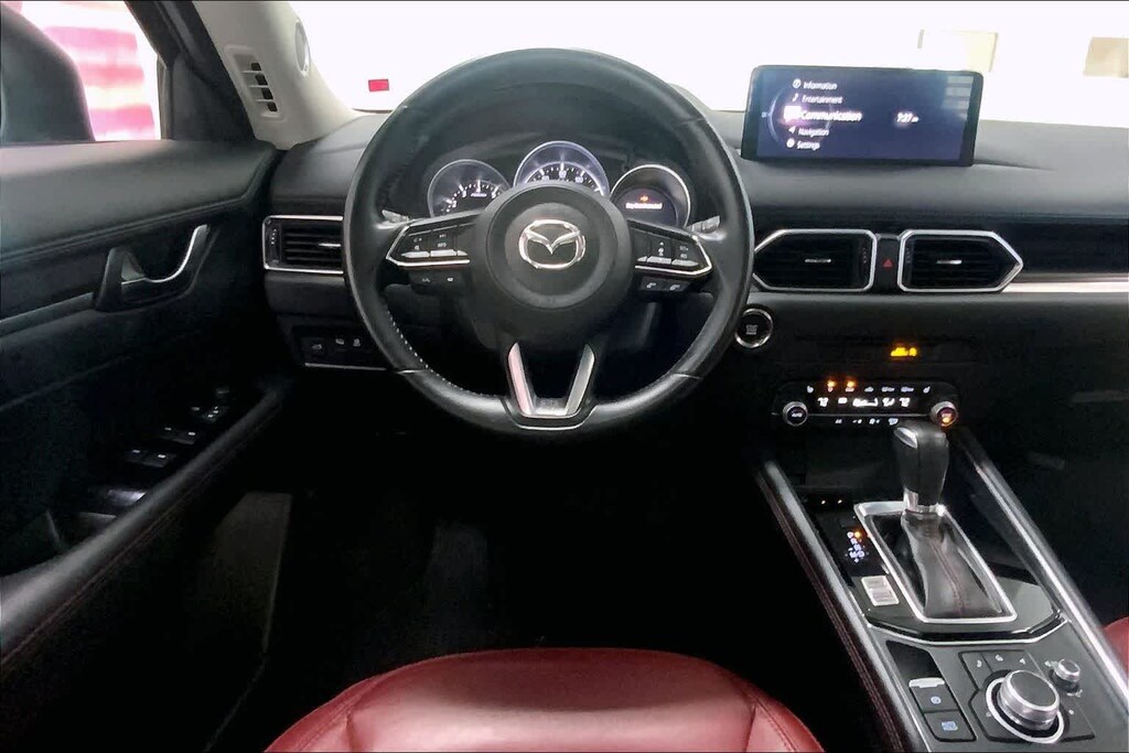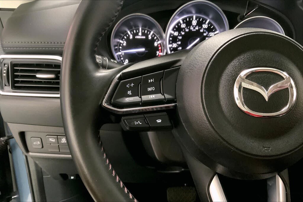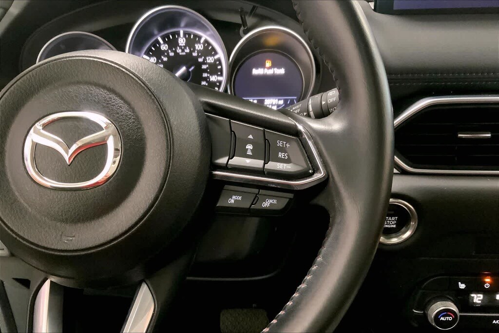 CX-5 2.5 S Carbon Edition is nicely equipped with 10 Speakers, 4-Wheel Disc Brakes, 4.624 Axle Ratio, ABS brakes, Air Conditioning, Alloy wheels, AM/FM radio, AppLink/Apple CarPlay and Android Auto, Auto High-beam Headlights, Auto-dimming Rear-View mirror, Automatic temperature control, Black Lug Nuts & Black Wheel Locks, Brake assist, Bumpers: body-color, Carbon Edition License Plate Frame, Delay-off headlights, Driver door bin, Driver vanity mirror, Dual front impact airbags, Dual front side impact airbags, E911 Automatic Emergency Notification, Electronic Stability Control, Emergency communication system: MAZDA CONNECT, Exterior Parking Camera Rear, Four wheel independent suspension, Front anti-roll bar, Front Bucket Seats, Front Center Armrest w/Storage, Front dual zone A/C, Front reading lights, Fully automatic headlights, Garage door transmitter: HomeLink, Heated Front Bucket Seats, Heated front seats, Illuminated entry, Infotainment System Voice Command, Leather Seat Trim, Leather Shift Knob, Low tire pressure warning, Memory seat, Multifunction Commander Control, Occupant sensing airbag, Outside temperature display, Overhead airbag, Overhead console, Pandora, Panic alarm, Passenger door bin, Passenger vanity mirror, Power door mirrors, Power driver seat, Power Liftgate, Power moonroof, Power passenger seat, Power steering, Power windows, Radio Broadcast Data System Program Information, Radio data system, Radio: AM/FM/HD Audio System, Rain sensing wipers, Rear anti-roll bar, Rear reading lights, Rear seat center armrest, Rear window defroster, Rear window wiper, Remote keyless entry, Retractable Cargo Cover, Roadside Assistance Kit, Roof Rack Side Rails, SMS Text Msg Audio Delivery & Reply, Speed control, Speed-sensing steering, Split folding rear seat, Spoiler, Steering wheel mounted audio controls, Tachometer, Telescoping steering wheel, Tilt steering wheel, Traction control, Trip computer, Turn signal indicator mirrors, Variably intermittent wipers, and Wheels: 19 x 7J Aluminum Alloy.