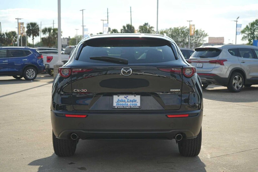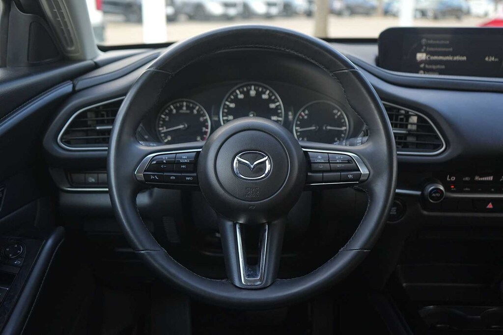 LOCAL TRADE, BLUETOOTH, NON-SMOKER, ** LEATHER SEATS, ** HEATED SEATS, ** REARVIEW CAMERA, ** KEYLESS ENTRY, ** APPLE CARPLAY, ** BLUETOOTH, HANDS-FREE, ** BLIND SPOT ALERT, ** KEYLESS START, ** PREMIUM WHEELS, ** LANE DEPARTURE WARNING, ** SATELLITE RADIO, ** STEERING WHEEL CONTROLS, ** ALARM SYSTEM, ** WIFI HOTSPOT, ** AUXILIARY AUDIO INPUT, ** LOCAL TRADE-IN, ** LOCALLY OWNED AND SERVICED, ** ALL WHEEL DRIVE, ** FOUR WHEEL DRIVE, ** BACK UP CAMERA, ** ALLOY WHEELS, CX-30 2.5 S Select Sport, 4D Sport Utility, SKYACTIVî 2.5L 4-Cylinder DOHC 16V, 6-Speed Automatic, AWD, Jet Black Mica, Black Premium Synthetic, 4-Wheel Disc Brakes, 4.095 Axle Ratio, 6 Speakers, ABS brakes, Air Conditioning, Alloy wheels, AM/FM radio, AppLink/Apple CarPlay and Android Auto, Auto High-beam Headlights, Automatic temperature control, Brake assist, Bumpers: body-color, Compass, Delay-off headlights, Driver door bin, Driver vanity mirror, Dual front impact airbags, Dual front side impact airbags, Electronic Stability Control, Emergency communication system: Mazda Connected Services (3-year complimentary trial included), Exterior Parking Camera Rear, Front anti-roll bar, Front Bucket Seats, Front Center Armrest, Front dual zone A/C, Front reading lights, Front wheel independent suspension, Fully automatic headlights, Heated door mirrors, Illuminated entry, Knee airbag, Leather Shift Knob, Leather steering wheel, Leatherette Seat Trim, Low tire pressure warning, MAZDA CONNECT Infotainment System, Occupant sensing airbag, Outside temperature display, Overhead airbag, Overhead console, Panic alarm, Passenger door bin, Passenger vanity mirror, Power door mirrors, Power steering, Power windows, Radio data system, Radio: AM/FM Audio System, Rain sensing wipers, Rear seat center armrest, Rear side impact airbag, Rear window defroster, Rear window wiper, Remote keyless entry, Speed control, Speed-sensing steering, Split folding rear seat, Spoiler, Steering wheel mounted audio controls, Tachometer, Telescoping steering wheel, Tilt steering wheel, Traction control, Trip computer, Turn signal indicator mirrors, Variably intermittent wipers, Wheels: 18 x 7J Aluminum Alloy, CX-30 2.5 S Select Sport, 4D Sport Utility, SKYACTIVî 2.5L 4-Cylinder DOHC 16V, 6-Speed Automatic, AWD, Jet Black Mica, Black Premium Synthetic.