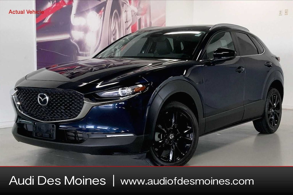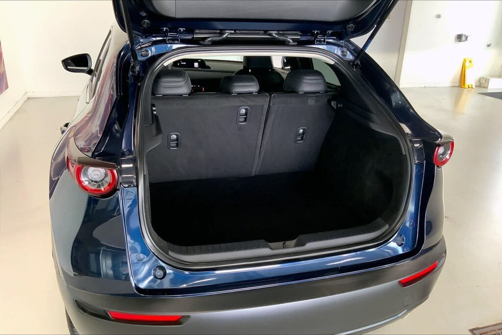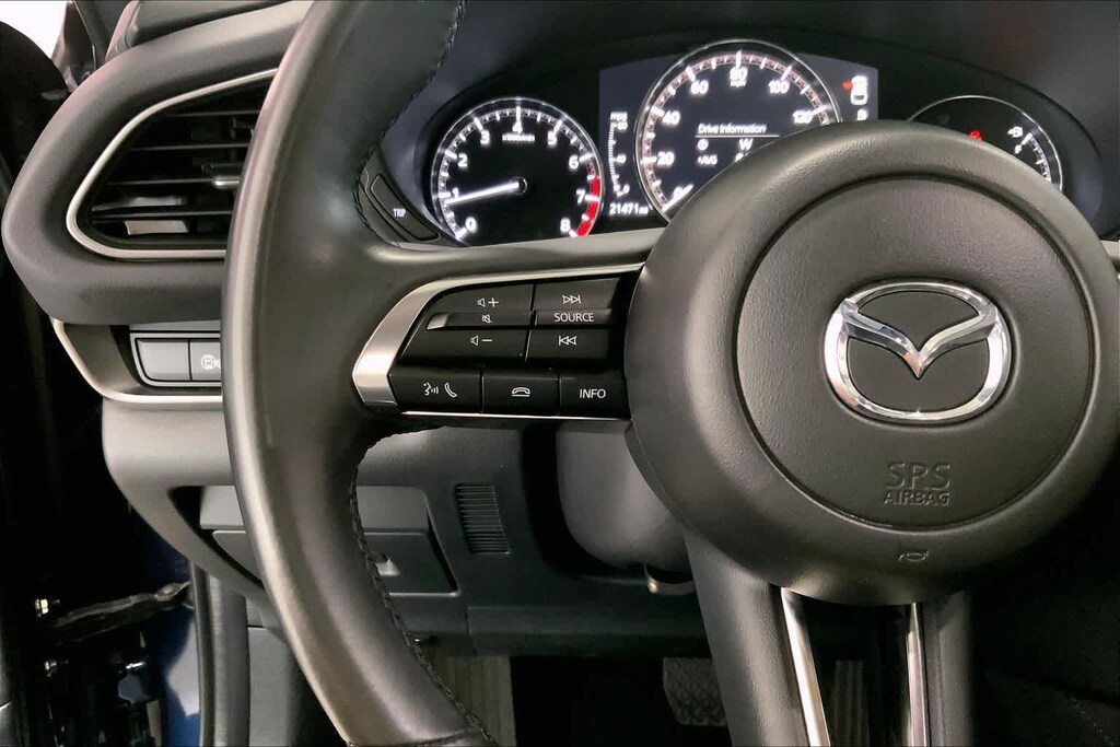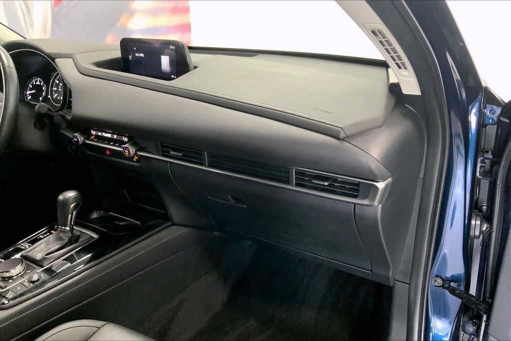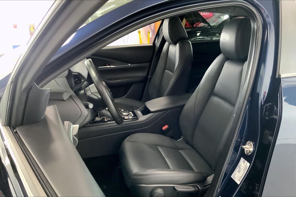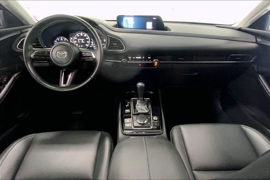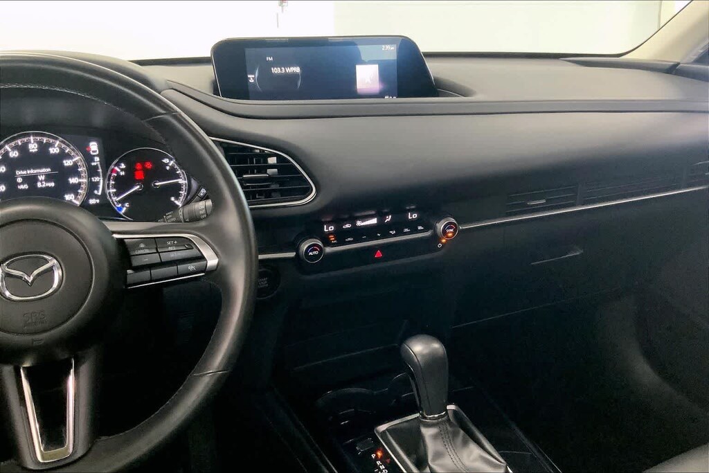 CX-30 2.5 S Select Sport is nicely equipped with 4-Wheel Disc Brakes, 4.095 Axle Ratio, 6 Speakers, ABS brakes, Air Conditioning, Alloy wheels, AM/FM radio, AppLink/Apple CarPlay and Android Auto, Auto High-beam Headlights, Automatic temperature control, Black Lug Nuts & Black Wheel Locks, Brake assist, Bumpers: body-color, Compass, Delay-off headlights, Driver door bin, Driver vanity mirror, Dual front impact airbags, Dual front side impact airbags, Electronic Stability Control, Emergency communication system: Mazda Connected Services (3-year complimentary trial included), Exterior Parking Camera Rear, Front anti-roll bar, Front Bucket Seats, Front Center Armrest, Front dual zone A/C, Front reading lights, Front wheel independent suspension, Fully automatic headlights, Heated door mirrors, Illuminated entry, Knee airbag, Leather Shift Knob, Leather steering wheel, Leatherette Seat Trim, Low tire pressure warning, MAZDA CONNECT Infotainment System, Occupant sensing airbag, Outside temperature display, Overhead airbag, Overhead console, Panic alarm, Passenger door bin, Passenger vanity mirror, Power door mirrors, Power steering, Power windows, Radio data system, Radio: AM/FM Audio System, Rain sensing wipers, Rear seat center armrest, Rear side impact airbag, Rear window defroster, Rear window wiper, Remote keyless entry, Speed control, Speed-sensing steering, Split folding rear seat, Spoiler, Steering wheel mounted audio controls, Tachometer, Telescoping steering wheel, Tilt steering wheel, Traction control, Trip computer, Turn signal indicator mirrors, Variably intermittent wipers, and Wheels: 18 x 7J Aluminum Alloy.