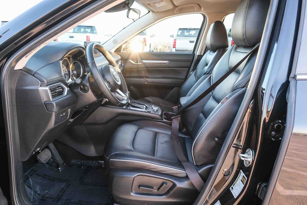 All Wheel Drive, Heated Driver Seat, Back-Up Camera, iPod/MP3 Input, Onboard Communications System, Aluminum Wheels, Keyless Start, Dual Zone A/C, Smart Device Integration, Blind Spot Monitor, Cross-Traffic Alert, Lane Keeping Assist, WiFi Hotspot, Brake Actuated Limited Slip Differential, Apple CarPlay®. Rear Spoiler, MP3 Player, Privacy Glass, Keyless Entry, Remote Trunk Release. Mazda CX-5 2.5 S Select Package with Jet Black Mica exterior and Black interior features a 4 Cylinder Engine with 187 HP at 6000 RPM*.