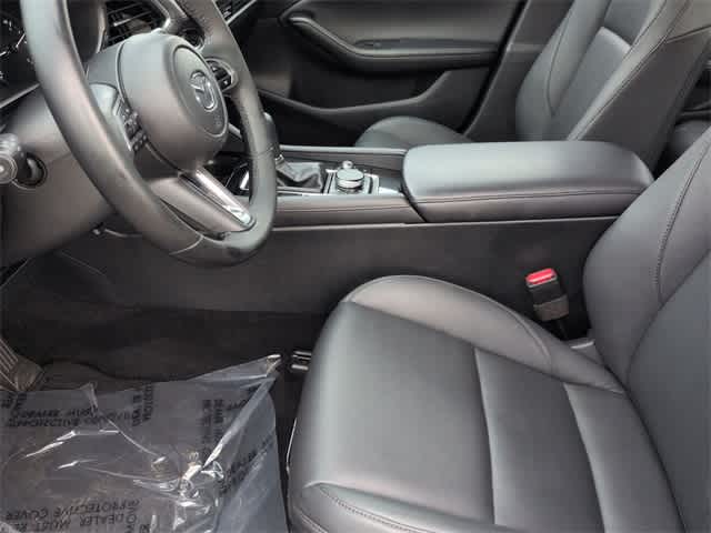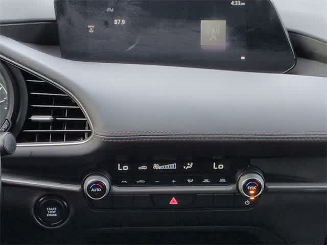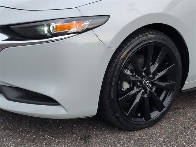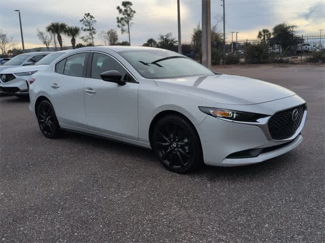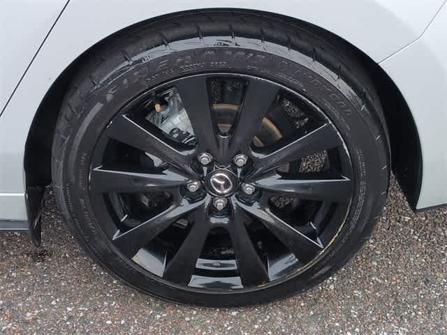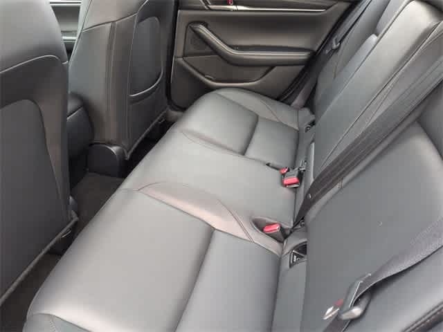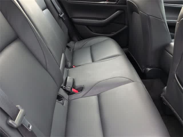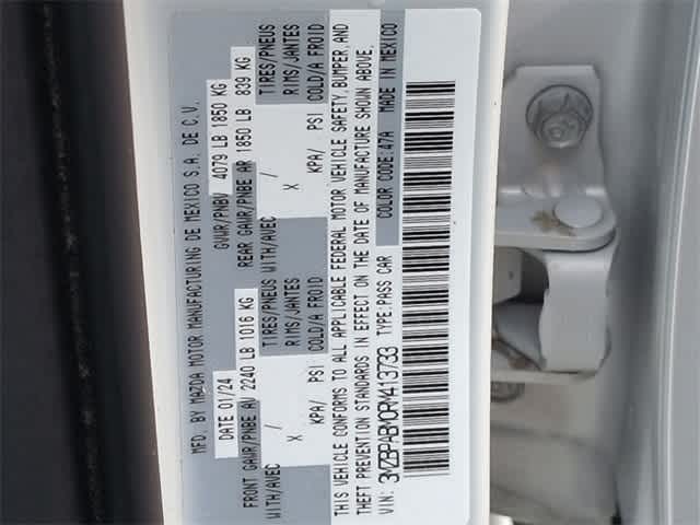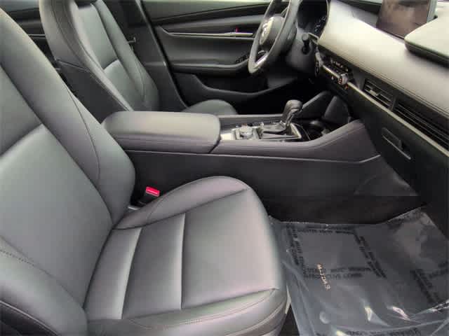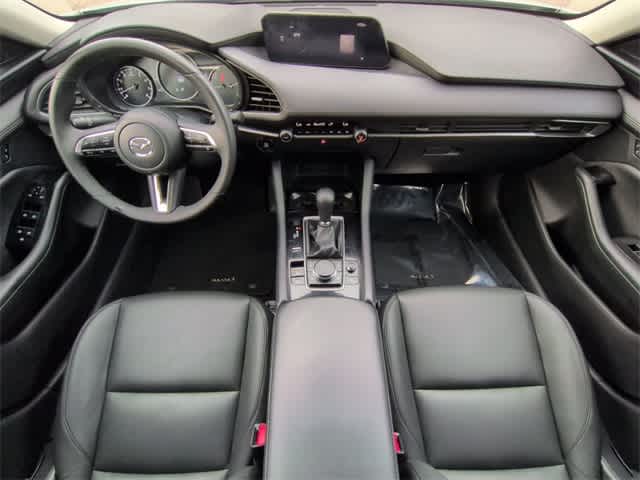 This 2024 Mazda Mazda3 2.5 S Select Sport in Ceramic Metallic, features 4-Wheel Disc Brakes, 6 Speakers, ABS brakes, Air Conditioning, Alloy wheels, AM/FM radio, AppLink/Apple CarPlay and Android Auto, Auto High-beam Headlights, Automatic temperature control, Brake assist, Bumpers: body-color, Ceramic Metallic Paint Charge, Compass, Delay-off headlights, Driver door bin, Driver vanity mirror, Dual front impact airbags, Dual front side impact airbags, Electronic Stability Control, Emergency communication system: Mazda Connected Services (3-year complimentary trial included), Exterior Parking Camera Rear, Front anti-roll bar, Front Bucket Seats, Front Center Armrest, Front dual zone A/C, Front reading lights, Front Sport Bucket Seats, Front wheel independent suspension, Fully automatic headlights, Heated door mirrors, Illuminated entry, Knee airbag, Leather Shift Knob, Leather steering wheel, Leatherette Seat Trim, Low tire pressure warning, MAZDA CONNECT Infotainment System, Mazda Navigation System, Occupant sensing airbag, Outside temperature display, Overhead airbag, Overhead console, Panic alarm, Passenger door bin, Passenger vanity mirror, Power door mirrors, Power steering, Power windows, Radio data system, Radio: AM/FM Audio System, Rain sensing wipers, Rear seat center armrest, Rear side impact airbag, Rear window defroster, Remote keyless entry, Speed control, Speed-sensing steering, Split folding rear seat, Steering wheel mounted audio controls, Tachometer, Telescoping steering wheel, Tilt steering wheel, Traction control, Trip computer, Turn signal indicator mirrors, Variably intermittent wipers, and Wheels: 18 x 7J Aluminum Alloy: