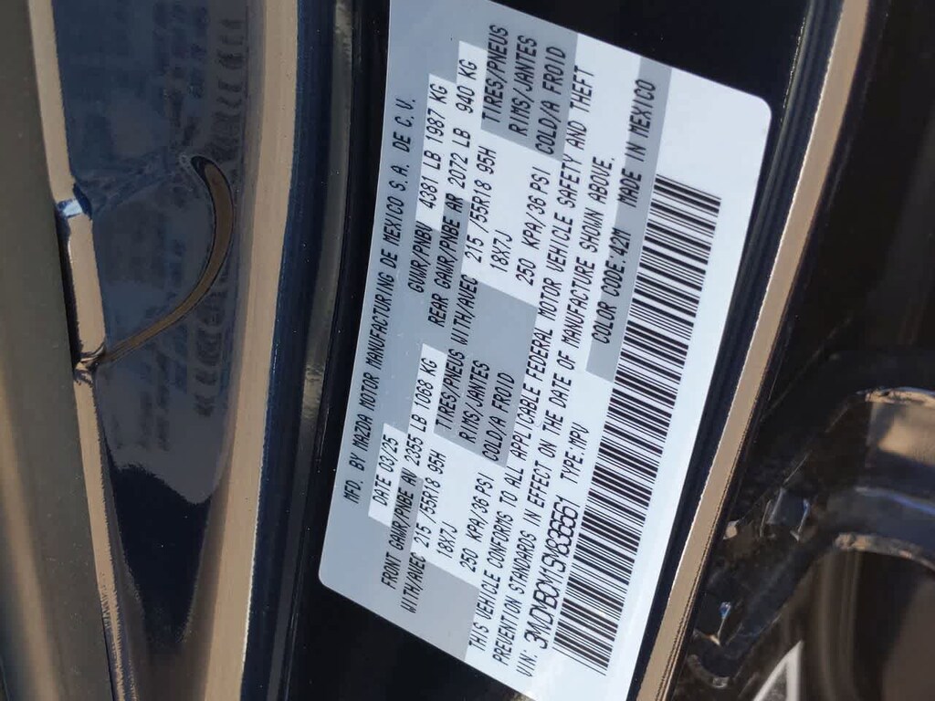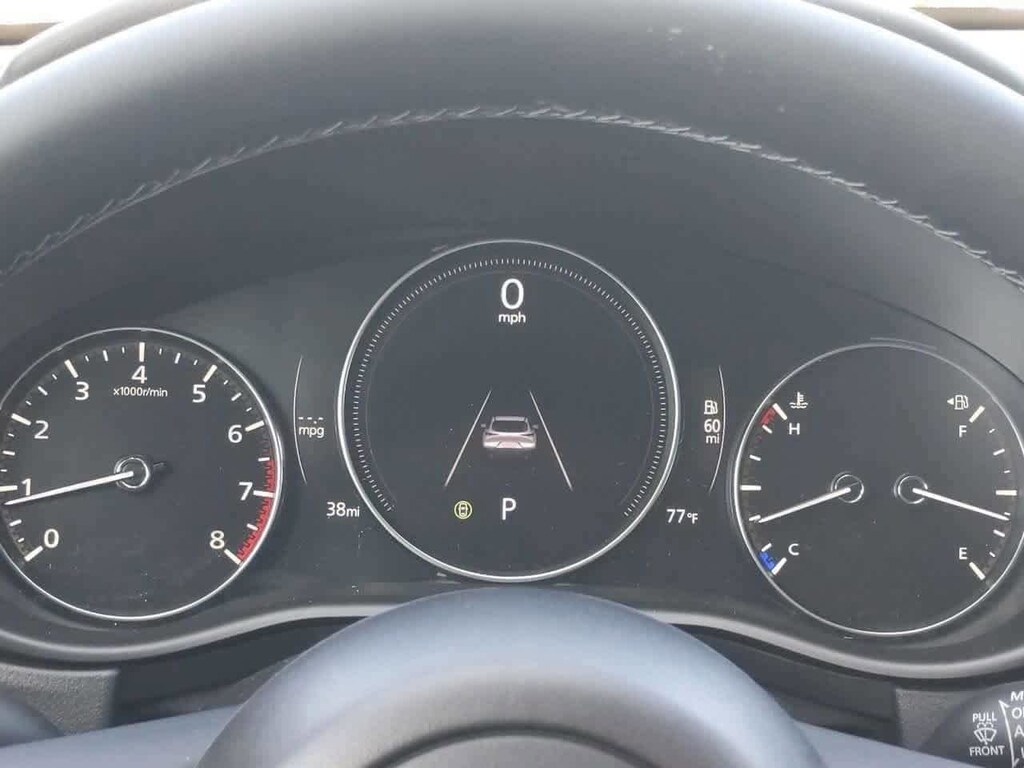 4-Wheel Disc Brakes, 6 Speakers, ABS brakes, Air Conditioning, Alloy wheels, AM/FM radio, AppLink/Apple CarPlay and Android Auto, Auto High-beam Headlights, Automatic temperature control, Brake assist, Bumpers: body-color, Cargo Cover, Compass, Delay-off headlights, Driver door bin, Driver vanity mirror, Dual front impact airbags, Dual front side impact airbags, Electronic Stability Control, Emergency communication system: Mazda Connected Services (3-year trial subscription included), Exterior Parking Camera Rear, Front & Rear Splash Guards, Front anti-roll bar, Front Bucket Seats, Front Center Armrest, Front dual zone A/C, Front reading lights, Front wheel independent suspension, Fully automatic headlights, Heated door mirrors, Heated Front Bucket Seats, Heated front seats, Illuminated entry, Knee airbag, Leather Shift Knob, Leather steering wheel, Leatherette Seat Trim, Low tire pressure warning, MAZDA CONNECT Infotainment System, Memory seat, Occupant sensing airbag, Outside temperature display, Overhead airbag, Overhead console, Panic alarm, Passenger door bin, Passenger vanity mirror, Power door mirrors, Power driver seat, Power moonroof, Power steering, Power windows, Radio data system, Radio: AM/FM Audio System, Rain sensing wipers, Rear seat center armrest, Rear side impact airbag, Rear window defroster, Rear window wiper, Remote keyless entry, Speed control, Speed-sensing steering, Split folding rear seat, Spoiler, Steering wheel mounted audio controls, Tachometer, Telescoping steering wheel, Tilt steering wheel, Traction control, Trip computer, Turn signal indicator mirrors, Variably intermittent wipers, Wheel Locks, and Wheels: 18 x 7J Aluminum Alloy.