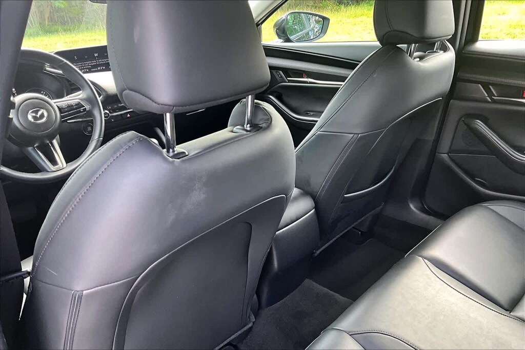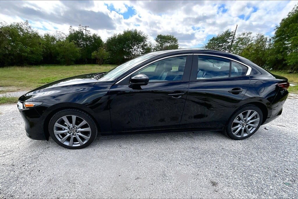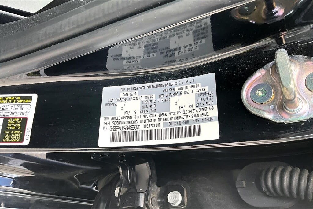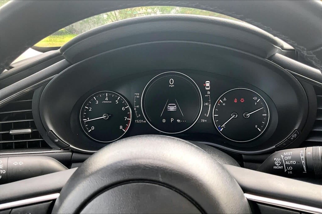 FRESH OIL CHANGE, 4-Wheel Disc Brakes, 6 Speakers, ABS brakes, Air Conditioning, Alloy wheels, AM/FM radio, AppLink/Apple CarPlay and Android Auto, Auto High-beam Headlights, Automatic temperature control, Brake assist, Bumpers: body-color, Compass, Delay-off headlights, Driver door bin, Driver vanity mirror, Dual front impact airbags, Dual front side impact airbags, Electronic Stability Control, Emergency communication system: Mazda Connected Services (1-year complimentary trial included), Exterior Parking Camera Rear, Front anti-roll bar, Front Bucket Seats, Front Center Armrest, Front dual zone A/C, Front reading lights, Front wheel independent suspension, Fully automatic headlights, Heated door mirrors, Heated front seats, Heated Front Sport Bucket Seats, Illuminated entry, Knee airbag, Leather Shift Knob, Leather steering wheel, Leatherette Seat Trim, Low tire pressure warning, MAZDA CONNECT Infotainment System, Memory seat, Occupant sensing airbag, Outside temperature display, Overhead airbag, Overhead console, Panic alarm, Passenger door bin, Passenger vanity mirror, Power door mirrors, Power driver seat, Power moonroof, Power steering, Power windows, Radio data system, Radio: AM/FM Audio System, Rain sensing wipers, Rear seat center armrest, Rear side impact airbag, Rear window defroster, Remote keyless entry, Speed control, Speed-sensing steering, Split folding rear seat, Steering wheel mounted audio controls, Tachometer, Telescoping steering wheel, Tilt steering wheel, Traction control, Trip computer, Turn signal indicator mirrors, Variably intermittent wipers, Wheels: 18 x 7J Aluminum Alloy. Odometer is 1582 miles below market average! 27/37 City/Highway MPG Jet Black Mica 2025 Mazda Mazda3 2.5 S Preferred Package FWD 6-Speed Automatic 2.5L I4 DOHC 16V LEV3-SULEV30 191hp