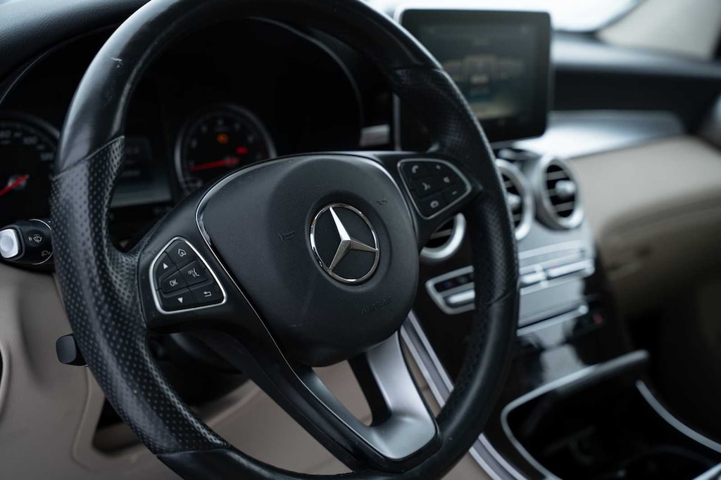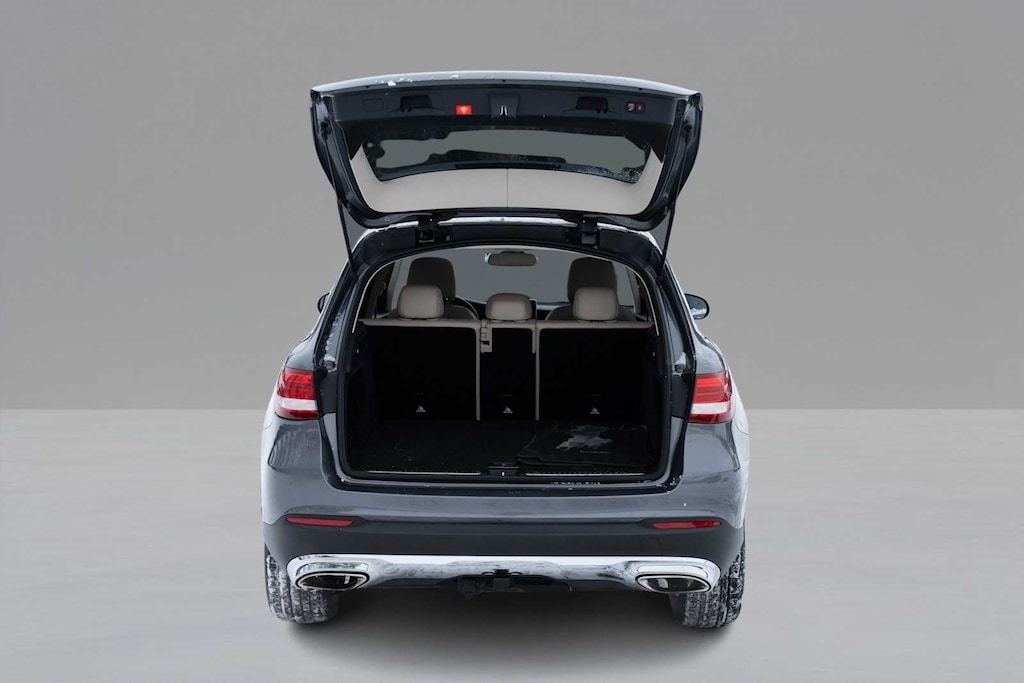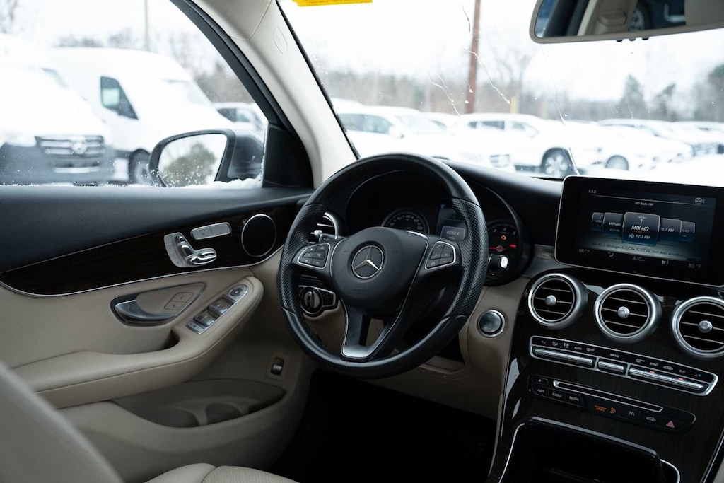 This GLC is well equipped with desirable features including panoramic sunroof, Premium Package, Multimedia Package, navigation, rearview camera, Blind Spot Assist, Collision Prevention Assist Plus, PRE-SAFEî, KEYLESS-GO, power liftgate, heated front seats, heated steering wheel, dual-zone automatic climate control, power folding mirrors, memory seating, trailer hitch, 18-inch alloy wheels, and AGILITY SELECTî drive modes. Chrome roof rails, privacy glass, and refined interior wood trim complete the look.