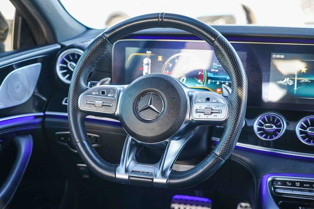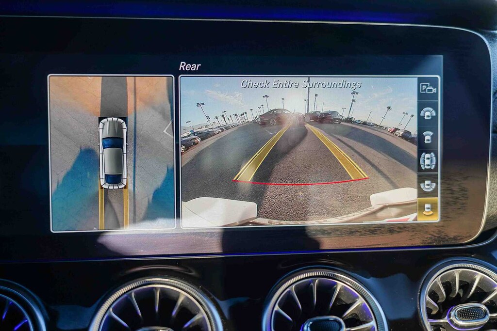 14 Speakers, 4-Wheel Disc Brakes, ABS brakes, Adaptive suspension, Air Conditioning, Alloy wheels, AM/FM radio: SiriusXM, Apple CarPlay, Auto High-beam Headlights, Auto tilt-away steering wheel, Auto-dimming door mirrors, Auto-dimming Rear-View mirror, Automatic temperature control, Brake assist, Bumpers: body-color, Burmesterî Surround Sound System, Child-Seat-Sensing Airbag, Compass, Delay-off headlights, Driver door bin, Driver vanity mirror, Dual front impact airbags, Dual front side impact airbags, Electronic Stability Control, Emergency communication system: eCall Emergency System, Exterior Parking Camera Rear, Four wheel independent suspension, Front anti-roll bar, Front Bucket Seats, Front Center Armrest, Front dual zone A/C, Front reading lights, Fully automatic headlights, Garage door transmitter, Head restraints memory, Heated door mirrors, Heated Front Seats, Heated front seats, Illuminated entry, Knee airbag, Leather Shift Knob, Low tire pressure warning, MB-Tex/DINAMICA Upholstery, Memory seat, Navigation System, Occupant sensing airbag, Outside temperature display, Overhead airbag, Overhead console, Panic alarm, Passenger door bin, Passenger vanity mirror, Power adjustable front head restraints, Power door mirrors, Power driver seat, Power Liftgate, Power moonroof, Power passenger seat, Power steering, Power windows, Radio data system, Radio: AM/FM w/COMANDî Navigation, Rain sensing wipers, Rear anti-roll bar, Rear reading lights, Rear window defroster, Remote keyless entry, Security system, Speed control, Speed-sensing steering, Speed-Sensitive Wipers, Spoiler, Sport steering wheel, Steering wheel memory, Steering wheel mounted audio controls, Tachometer, Telescoping steering wheel, Tilt steering wheel, Traction control, Trip computer, Turn signal indicator mirrors, Variably intermittent wipers, and Wheels: 19 AMGî Multispoke. I6 9-Speed Automatic 4MATICî