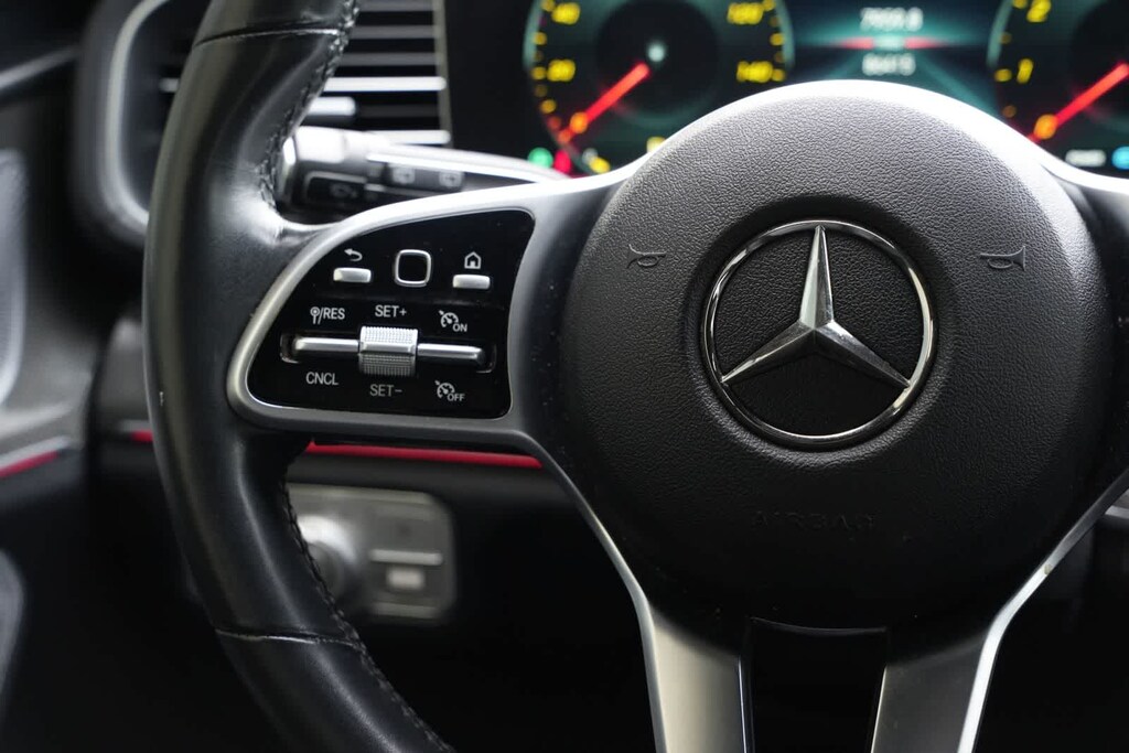 13 Speakers, 3.27 Axle Ratio, 3rd row seats: split-bench, 4-Way Driver Lumbar Support, 4-Wheel Disc Brakes, 7-Seat Configuration, ABS brakes, Active Brake Assist w/Cross-Traffic Function, Adaptive suspension, Air Conditioning, Alloy wheels, AM/FM radio: SiriusXM, Apple CarPlayî/Android Autoî, Auto High-beam Headlights, Auto tilt-away steering wheel, Auto-dimming door mirrors, Auto-dimming Rear-View mirror, Auto-leveling suspension, Automatic temperature control, Brake assist, Bumpers: body-color, Burmesterî Surround Sound System, Child-Seat-Sensing Airbag, Compass, Delay-off headlights, Driver door bin, Driver vanity mirror, Dual front impact airbags, Dual front side impact airbags, Electronic Stability Control, Emergency communication system: eCall Emergency System, Four wheel independent suspension, Front anti-roll bar, Front Bucket Seats, Front Center Armrest w/Storage, Front dual zone A/C, Front reading lights, Fully automatic headlights, Garage door transmitter: HomeLink, Genuine wood console insert, Genuine wood dashboard insert, Genuine wood door panel insert, Head restraints memory, Heated and Ventilated Power Front Seats w/Memory, Heated door mirrors, Heated front seats, Illuminated entry, Knee airbag, Low tire pressure warning, MB-Tex Upholstery, Memory seat, Navigation system: MB Navigation, Occupant sensing airbag, Outside temperature display, Overhead airbag, Overhead console, Panic alarm, Passenger door bin, Passenger vanity mirror, Power adjustable front head restraints, Power door mirrors, Power driver seat, Power Liftgate, Power moonroof, Power passenger seat, Power steering, Power windows, Premium audio system: MBUX, Radio: MBUX Multimedia System, Rain sensing wipers, Rear air conditioning, Rear anti-roll bar, Rear dual zone A/C, Rear fog lights, Rear reading lights, Rear seat center armrest, Rear window defroster, Rear window wiper, Remote keyless entry, Roof rack: rails only, Security system, Speed control, Speed-sensing steering, Speed-Sensitive Wipers, Split folding rear seat, Spoiler, Steering wheel memory, Steering wheel mounted audio controls, Tachometer, Telescoping steering wheel, Tilt steering wheel, Traction control, Trip computer, Turn signal indicator mirrors, Variably intermittent wipers, Ventilated front seats, Weather band radio, Wheels: 20 8-Spoke.