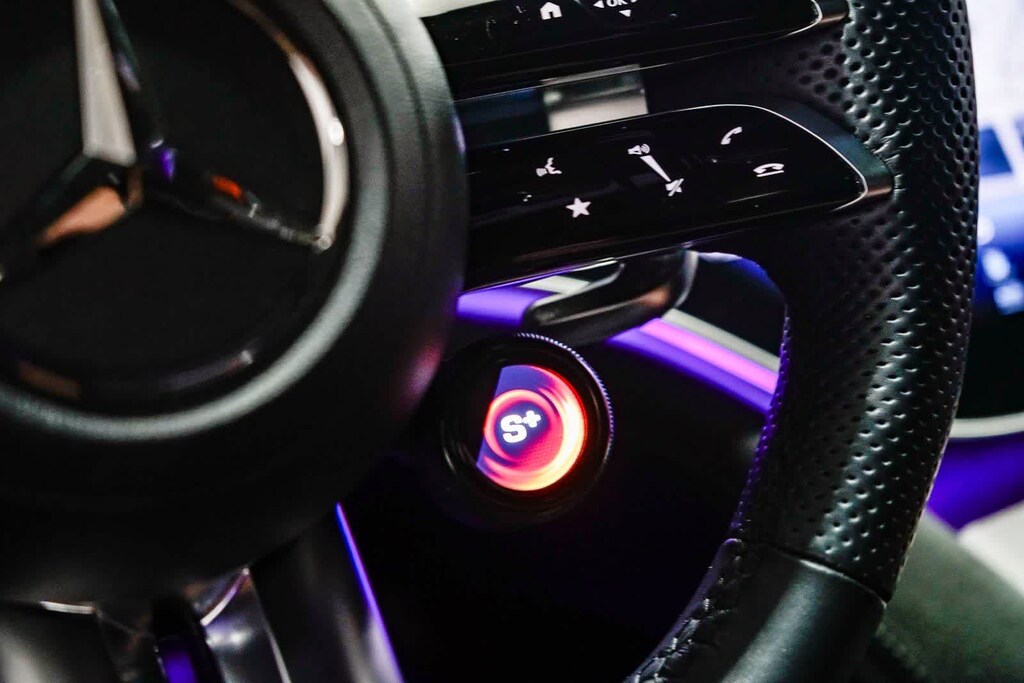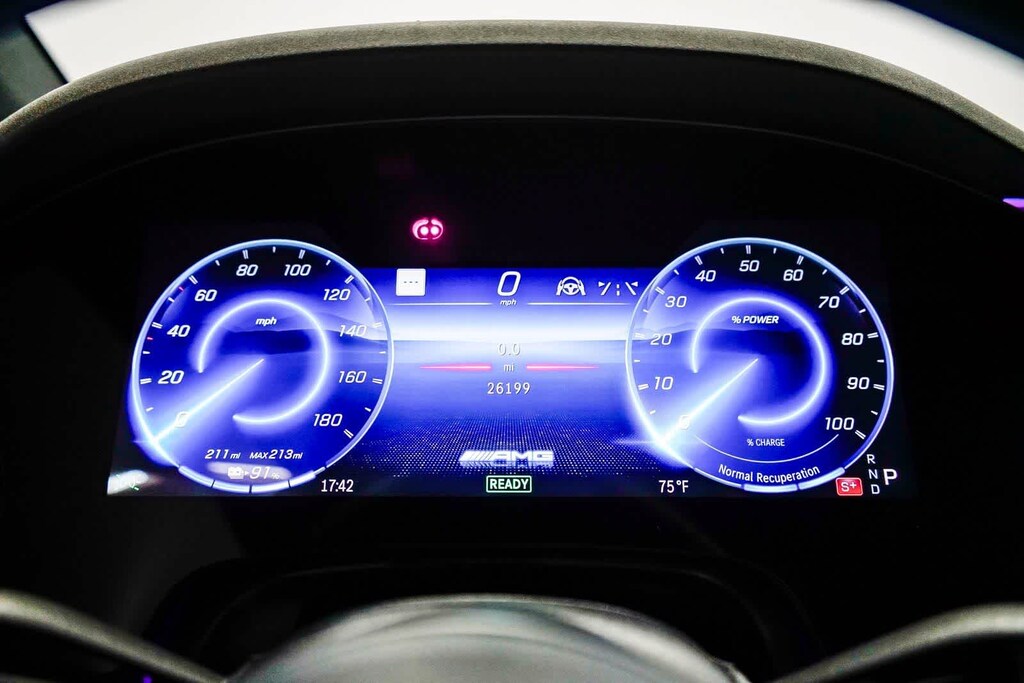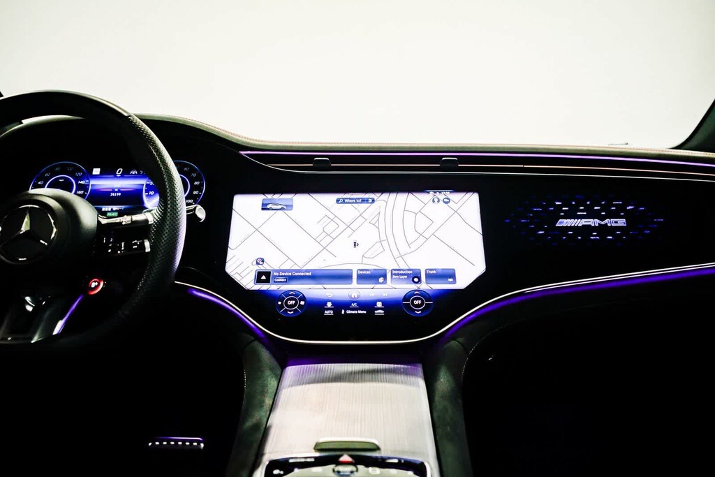 This vehicle includes: 15 Speakers, Alloy wheels, Electronic Stability Control, Exterior Parking Camera Rear, Leather steering wheel, Power Liftgate, Power moonroof: Panorama, Premium audio system: MBUX, Wheels: 21 x 9.5J AMGî Twin 5-Spoke, 4-Wheel Disc Brakes, ABS brakes, Adaptive suspension, Air Conditioning, Apple CarPlayî/Android Autoî, Auto High-beam Headlights, Auto tilt-away steering wheel, Auto-dimming door mirrors, Auto-dimming Rear-View mirror, Auto-leveling suspension, Automatic temperature control, Axle Ratio: TBD, Black Seatbelts, Brake assist, Bumpers: body-color, Compass, Delay-off headlights, Driver door bin, Driver vanity mirror, Dual front impact airbags, Dual front side impact airbags, Emergency communication system: eCall Emergency System, Four wheel independent suspension, Front anti-roll bar, Front Bucket Seats, Front Center Armrest, Front dual zone A/C, Front reading lights, Garage door transmitter: HomeLink, Genuine wood console insert, Head restraints memory, Heated door mirrors, Heated front seats, Heated Power Front Sport Seats w/Memory, HVAC memory, Illuminated entry, Knee airbag, Low tire pressure warning, MB-Tex/Microfiber Upholstery, Memory seat, Navigation system: Navigation with Electric Intelligence, Occupant sensing airbag, Outside temperature display, Overhead airbag, Overhead console, Panic alarm, Passenger door bin, Passenger vanity mirror, Power adjustable front head restraints, Power door mirrors, Power driver seat, Power passenger seat, Power steering, Power windows, Radio data system, Radio: Burmesterî 3D Surround Sound System, Rain sensing wipers, Rear anti-roll bar, Rear reading lights, Rear seat center armrest, Rear window defroster, Rear window wiper, Remote keyless entry, Security system, SiriusXM Satellite Radio w/Trial Period, Speed control, Speed-sensing steering, Speed-Sensitive Wipers, Split folding rear seat, Spoiler, Sport steering wheel, Steering wheel memory, Steering wheel mounted audio controls, Telescoping steering wheel, Tilt steering wheel, Traction control, Trip computer, Turn signal indicator mirrors, Variably intermittent wipers, and Wireless Smartphone Integration