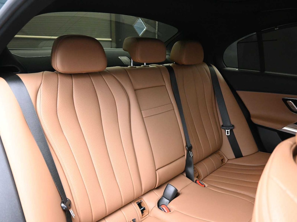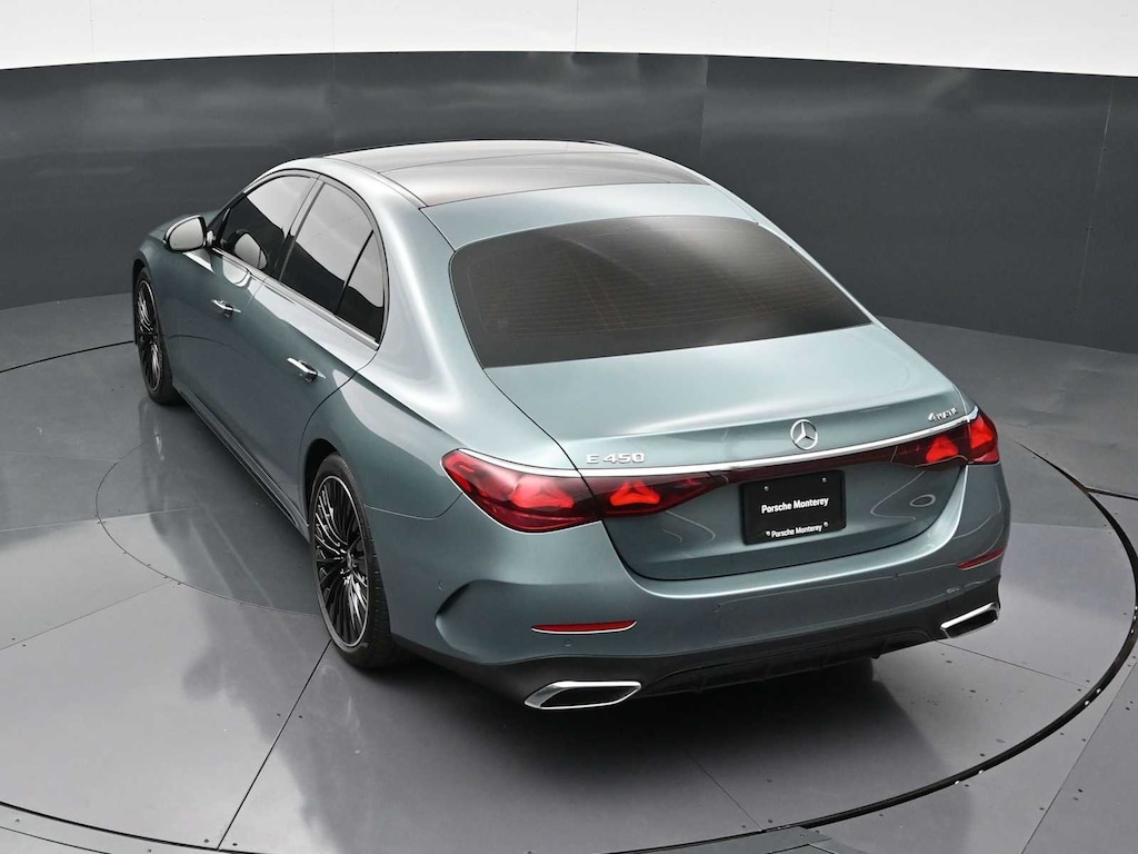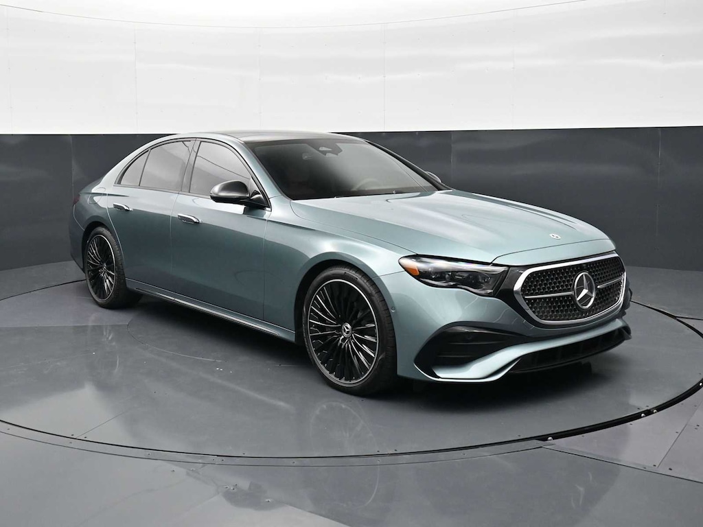 PINNACLE TRIM Heat & Noise Insulating Glass, Head-Up Display, Burmester® 4D Surround Sound, 730 watts, 17 premium speakers w/speaker units in headliner, 4 additional sound generators (2 each in the backrests of the front seats), 15 amplifier channels, 3 sound profiles (Pure, 3D-Sound and Individual), Dolby Atmos w/2 3D speakers in front roof liner, Dolby Atmos technology for compatible audio formats, playback via the music streaming services Amazon Music and Apple Music integrated in the vehicle (user account required) or via your own external data carrier (connection to MBUX multimedia system required), Sound Personalisation, sound reproduction tailored to individual musical taste, Active Ambient Lighting, sound visualization, Illuminated Grille, Pinnacle Trim Factory Code, WHEELS: 20 AMG® MULTI-SPOKE ALLOY W/BLACK 20 x 8.5J front and 20 x 9.5J rear, Tires: 245/40R20 Fr & 275/35R20 Rr, Noise Reduced Tires, Summer Tires, MBUX SUPERSCREEN PACKAGE Privacy Function For Passenger Display, Front Passenger Display, Selfie & Video Camera, MBUX Multimedia System, MBUX Superscreen, DIGITAL LIGHT PACKAGE DIGITAL LIGHT, DIGITAL LIGHT Factory Code, VENTILATED FRONT SEATS, WINTER PACKAGE Heated Steering Wheel, Winter Package Factory Code, Heated Windscreen Washer System. Mercedes-Benz E 450 with Verde Silver Metallic exterior and Tonka Brown/Black interior features a Straight 6 Cylinder Engine with 375 HP at 5500 RPM*.