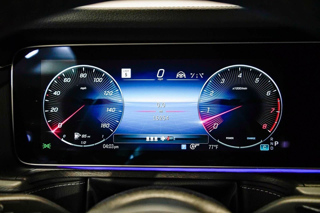 This vehicle includes: AMGî Line (AMGî Floor Mats, Exterior Protective Strips with Trim Insert, Front Brake Calipers with Mercedes-Benz Lettering, Multifunction Sports Steering Wheel in Nappa Leather, and Sporty Engine Sound), Exclusive Interior Package, 18 Speakers, 20 AMGî Twin 5-Spoke Light-Alloy Wheels, 4-Wheel Disc Brakes, ABS brakes, Adaptive suspension, Air Conditioning, Alloy wheels, AM/FM radio: SiriusXM, Apple CarPlayî/Android Autoî, Auto High-beam Headlights, Auto tilt-away steering wheel, Auto-dimming door mirrors, Auto-dimming Rear-View mirror, Automatic temperature control, Bodyside moldings, Brake assist, Bumpers: body-color, Child-Seat-Sensing Airbag, Compass, Delay-off headlights, Driver door bin, Driver vanity mirror, Dual front impact airbags, Dual front side impact airbags, Electronic Stability Control, Emergency communication system: Mercedes-Benz Emergency Call Service, Exterior Parking Camera Rear, Front anti-roll bar, Front Bucket Seats, Front Center Armrest, Front dual zone A/C, Front reading lights, Front wheel independent suspension, Garage door transmitter: HomeLink, Genuine wood console insert, Genuine wood dashboard insert, Genuine wood door panel insert, Head restraints memory, Headlight cleaning, Heated door mirrors, Heated front seats, Heated rear seats, Heated steering wheel, Illuminated entry, Knee airbag, Leather steering wheel, Leather Upholstery, Low tire pressure warning, Memory seat, Navigation system: MBUX, Occupant sensing airbag, Outside temperature display, Overhead airbag, Overhead console, Panic alarm, Passenger door bin, Passenger vanity mirror, Power adjustable front head restraints, Power door mirrors, Power driver seat, Power Heated Front Seats, Power moonroof, Power passenger seat, Power steering, Power windows, Radio data system, Radio: Burmesterî 3D Surround Sound System, Rain sensing wipers, Rear air conditioning, Rear anti-roll bar, Rear fog lights, Rear reading lights, Rear seat center armrest, Rear side impact airbag, Rear window defroster, Rear window wiper, Remote keyless entry, Security system, Speed control, Speed-sensing steering, Split folding rear seat, Steering wheel memory, Steering wheel mounted audio controls, Tachometer, Telescoping steering wheel, Tilt steering wheel, Traction control, Trip computer, Turn signal indicator mirrors, and Variably intermittent wipers