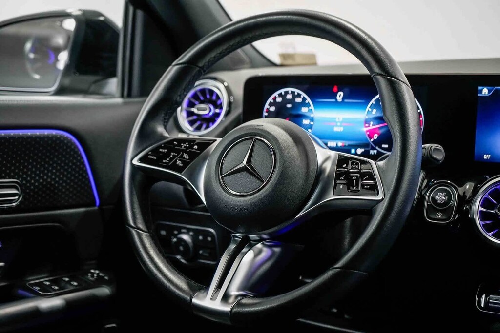 This vehicle includes: Exclusive Package (Advanced Sound System, MB Navigation, and Music Streaming), 4-Wheel Disc Brakes, 6 Speakers, ABS brakes, Air Conditioning, Alloy wheels, AM/FM radio: SiriusXM, Apple CarPlayî/Android Autoî, Auto High-beam Headlights, Auto-dimming door mirrors, Auto-dimming Rear-View mirror, Automatic temperature control, Brake assist, Bumpers: body-color, Child-Seat-Sensing Airbag, Delay-off headlights, Driver door bin, Driver vanity mirror, Dual front impact airbags, Dual front side impact airbags, Electronic Stability Control, Emergency communication system: eCall Emergency System and Active Emergency Stop Assist, Exterior Parking Camera Rear, Four wheel independent suspension, Front anti-roll bar, Front Bucket Seats, Front Center Armrest, Front dual zone A/C, Front fog lights, Front Power Comfort Seats, Front reading lights, Fully automatic headlights, Garage door transmitter, Heated door mirrors, Illuminated entry, Knee airbag, Leather steering wheel, Low tire pressure warning, MB-Tex Upholstery, Memory seat, Occupant sensing airbag, Outside temperature display, Overhead airbag, Overhead console, Panic alarm, Passenger door bin, Passenger vanity mirror, Power door mirrors, Power driver seat, Power Liftgate, Power passenger seat, Power steering, Power windows, Premium audio system: MBUX, Radio data system, Radio: Mercedes-Benz User Experience (MBUX), Rain sensing wipers, Rear anti-roll bar, Rear fog lights, Rear reading lights, Rear window defroster, Rear window wiper, Remote keyless entry, Security system, Speed control, Speed-sensing steering, Split folding rear seat, Spoiler, Steering wheel mounted audio controls, Tachometer, Telescoping steering wheel, Tilt steering wheel, Traction control, Trip computer, Turn signal indicator mirrors, Variably intermittent wipers, and Wheels: 18 Twin 5-Spoke