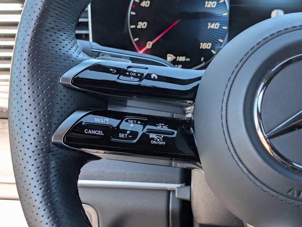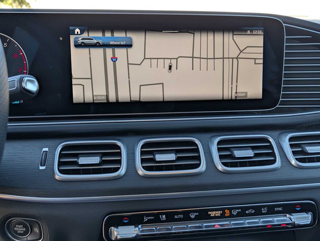 Turbocharged engine supported by a 48-volt mild hybrid system with Integrated Starter Generator for smooth power delivery and efficiency. 9G-TRONIC 9-speed automatic transmission paired with 4MATIC all-wheel drive for confident performance in all conditions. AIRMATIC air suspension provides adaptive ride comfort and handling. Increased towing capacity with factory trailer hitch for added versatility. Large capacity fuel tank designed for long-distance travel.