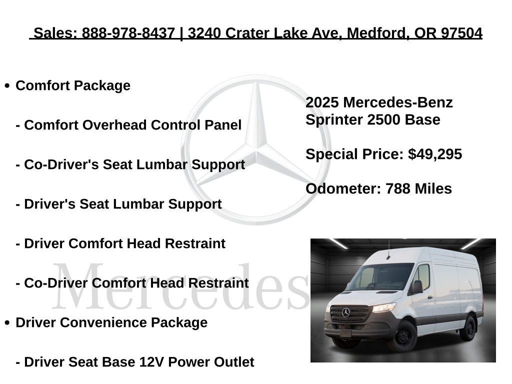 Priced below KBB Fair Purchase Price! This Mercedes-Benz Sprinter 2500 is well equipped and includes many features in addition to, 2 Additional Master Keys, Armrest for Driver's Seat, Armrest for Front Passenger's Seat, ATTENTION ASSIST®, Co-Driver Comfort Head Restraint, Co-Driver's Seat Lumbar Support, Comfort Driver's Seat, Comfort Overhead Control Panel, Comfort Package, Comfort Passenger's Seat, Driver Comfort Head Restraint, Driver Convenience Package, Driver Seat Base 12V Power Outlet, Driver's Seat Lumbar Support, Electrically Folding Exterior Mirrors, Hinged Lid for Left & Right Storage Compartments, Hinged Lid for Storage Compartment, Side Wall Paneling Full Hardboard, Trailer Hitch, Trailer Hitch Rear Half-Sided Step, Wood Floor w/6 D-Rings. Recent Arrival! Clean CARFAX.