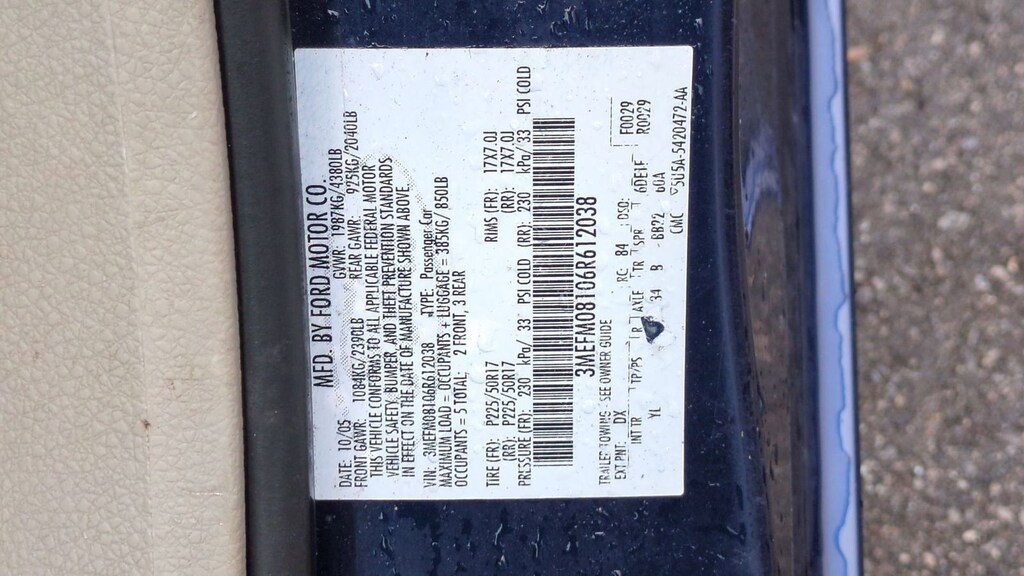 2006 Mercury Milan Premier Is nicely equipped with Order Code 130A, Duratec 3.0L V6, 17" 14-Spoke Machined Aluminum Wheels, 4-Wheel Disc Brakes, 6 Speakers, ABS brakes, Air Conditioning, Alloy wheels, AM/FM radio, Bodyside moldings, Bumpers: body-color, CD player, Driver door bin, Driver vanity mirror, Dual front impact airbags, Four wheel independent suspension, Front anti-roll bar, Front Bucket Seats, Front Center Armrest w/Storage, Front reading lights, Heated door mirrors, Illuminated entry, Leather Front Bucket Seats, Occupant sensing airbag, Overhead console, Panic alarm, Passenger door bin, Passenger vanity mirror, Power door mirrors, Power driver seat, Power steering, Power windows, Radio data system, Rear anti-roll bar, Rear reading lights, Rear seat center armrest, Rear window defroster, Remote keyless entry, Speed control, Speed-sensing steering, Speed-Sensitive Wipers, Split folding rear seat, Steering wheel mounted audio controls, Tachometer, Telescoping steering wheel, Tilt steering wheel, Trip computer, and Variably intermittent wipers.