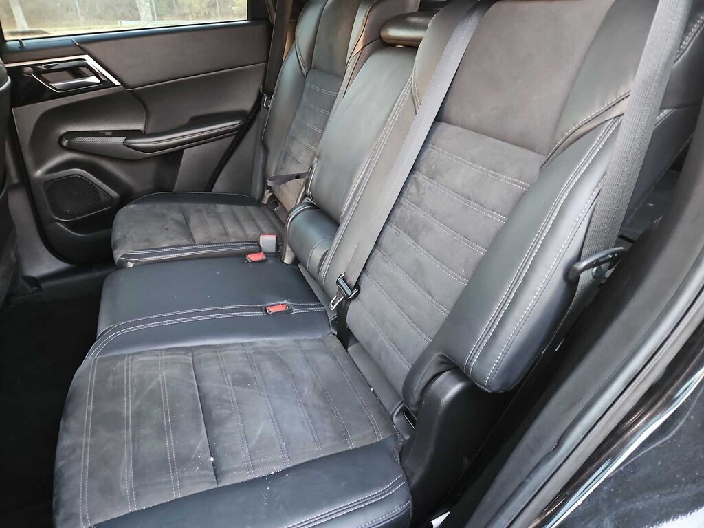Black ABS brakes, Alloy wheels, Electronic Stability Control, Front dual zone A/C, Heated door mirrors, Heated Front Bucket Seats, Heated front seats, Illuminated entry, Low tire pressure warning, Power Liftgate, Remote keyless entry, Traction control. This Outlander SE Special Edition is nicely equipped with ABS brakes, Alloy wheels, Electronic Stability Control, Front dual zone A/C, Heated door mirrors, Heated Front Bucket Seats, Heated front seats, Illuminated entry, Low tire pressure warning, Power Liftgate, Remote keyless entry, Traction control, 3rd row seats: split-bench, 4-Wheel Disc Brakes, 5.694 Axle Ratio, 6 Speakers, Air Conditioning, AM/FM radio: SiriusXM, Android Auto & Apple CarPlay, Auto High-beam Headlights, Automatic temperature control, Blind Spot Warning, Brake assist, Bumpers: body-color, Driver door bin, Driver vanity mirror, Dual front impact airbags, Dual front side impact airbags, Emergency communication system: Mitsubishi Connect w/ 24-month trial, Exterior Parking Camera Rear, Four wheel independent suspension, Front anti-roll bar, Front Bucket Seats, Front Center Armrest w/Storage, Front fog lights, Front reading lights, Fully automatic headlights, Knee airbag, Leather Shift Knob, Leather steering wheel, Occupant sensing airbag, Outside temperature display, Overhead airbag, Overhead console, Panic alarm, Passenger door bin, Passenger vanity mirror, Power door mirrors, Power driver seat, Power steering, Power windows, Radio data system, Radio: AM/FM 8.0 Smartphone Link Display Audio, Rain sensing wipers, Rear anti-roll bar, Rear Parking Sensors, Rear seat center armrest, Rear side impact airbag, Rear window defroster, Rear window wiper, Reclining 3rd row seat, Security system, Speed control, Speed-Sensitive Wipers, Split folding rear seat, Spoiler, Steering wheel mounted audio controls, Synthetic Leather Seat Trim, Tachometer, Telescoping steering wheel, Tilt steering wheel, Trip computer, Turn signal indicator mirrors, Variably intermittent wipers, and Wheels: 20 Two-Tone Alloy. Price does not include licensing costs, registration fees, taxes and dealer doc fee of $899.50 which are to be paid by the consumer. Mileage is EPA Estimated.