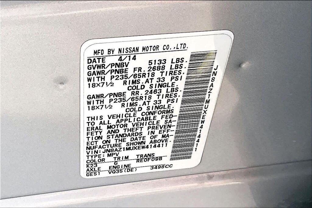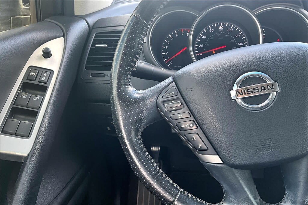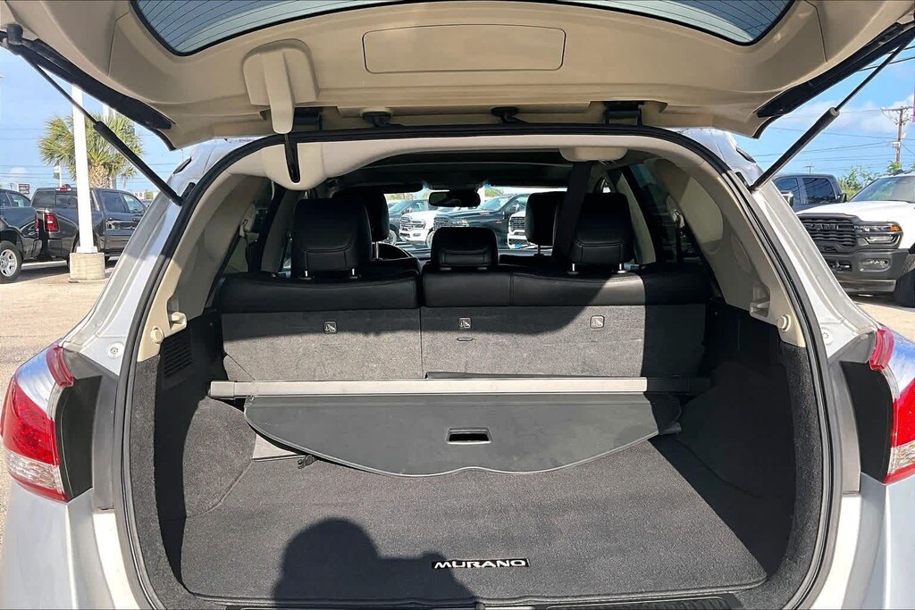 FRESH OIL CHANGE, CVT with Xtronic, 11 Speakers, 18 Aluminum Alloy Wheels, 4-Wheel Disc Brakes, 5.173 Axle Ratio, ABS brakes, Activation Disclaimer, Air Conditioning, Alloy wheels, AM/FM radio: SiriusXM, Anti-whiplash front head restraints, Auto-dimming Rear-View mirror, Automatic temperature control, Brake assist, Bumpers: body-color, Carpeted Floor Mats & Cargo Mat, CD player, Compass, Delay-off headlights, Driver door bin, Driver vanity mirror, Dual front impact airbags, Dual front side impact airbags, Electronic Stability Control, Exterior Parking Camera Rear, Four wheel independent suspension, Front anti-roll bar, Front Bucket Seats, Front Center Armrest w/Storage, Front dual zone A/C, Front fog lights, Front reading lights, Fully automatic headlights, Garage door transmitter: HomeLink, Heated door mirrors, Heated Front Bucket Seats, Heated front seats, Illuminated entry, Leather Appointed Seat Trim, Leather Shift Knob, Low tire pressure warning, Memory seat, Navigation Package, Occupant sensing airbag, Outside temperature display, Overhead airbag, Overhead console, Panic alarm, Passenger door bin, Passenger vanity mirror, Power door mirrors, Power driver seat, Power Liftgate, Power moonroof, Power passenger seat, Power steering, Power windows, Radio data system, Radio: AM/FM/Single CD Player w/Bose Audio System, Rain sensing wipers, Rear anti-roll bar, Rear reading lights, Rear seat center armrest, Rear window defroster, Rear window wiper, Remote keyless entry, Retractable Cargo Cover, Roof rack: rails only, Security system, Speed control, Speed-sensing steering, Speed-Sensitive Wipers, Split folding rear seat, Steering wheel mounted audio controls, Tachometer, Telescoping steering wheel, Tilt steering wheel, Traction control, Trip computer, Variably intermittent wipers, CVT with Xtronic. Odometer is 41935 miles below market average! Brilliant Silver Metallic 2014 Nissan Murano SL FWD CVT with Xtronic 3.5L V6 DOHC