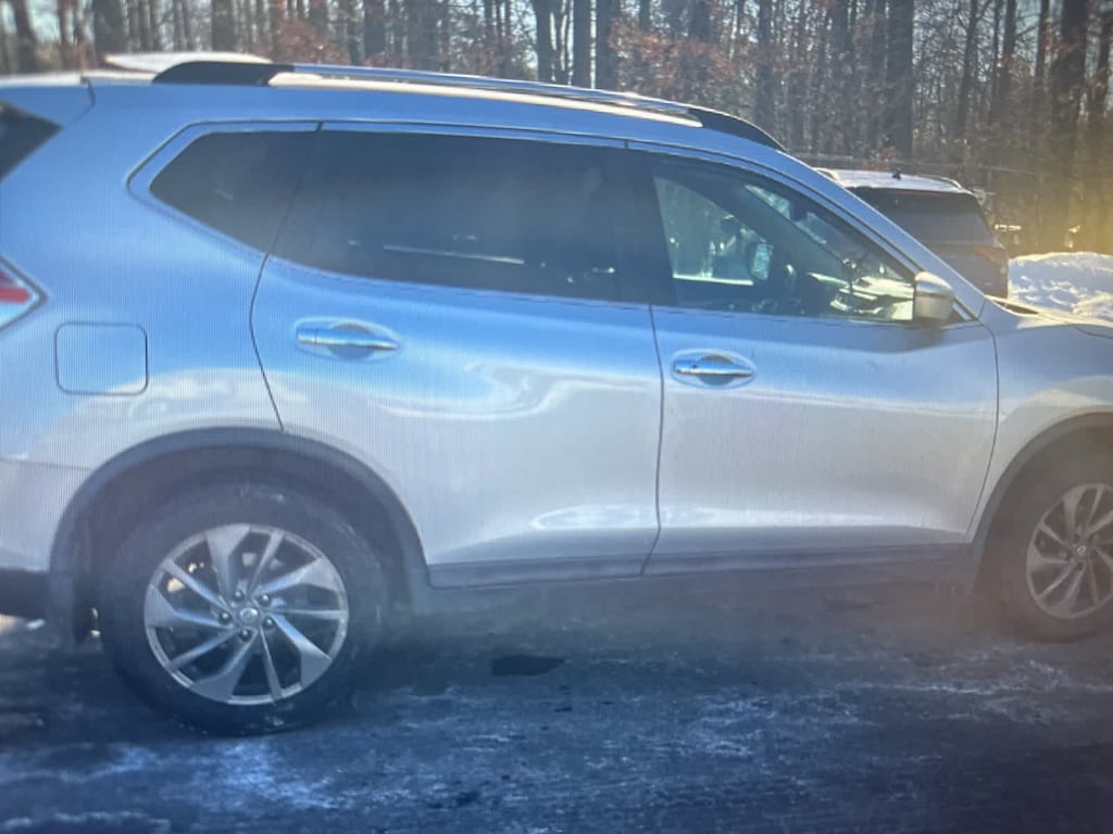 Brilliant Silver 2016 Nissan Rogue SL AWD CVT with Xtronic 2.5L I4 DOHC 16V AWD, 18 Alloy Wheels, 4-Wheel Disc Brakes, 5.694 Axle Ratio, 9 Speakers, ABS brakes, Air Conditioning, Alloy wheels, AM/FM radio: SiriusXM, Anti-whiplash front head restraints, Automatic temperature control, Blind Spot Warning, Brake assist, Bumpers: body-color, CD player, Delay-off headlights, Driver door bin, Driver vanity mirror, Dual front impact airbags, Dual front side impact airbags, Electronic Stability Control, Emergency communication system, Floor Mats & 2-PC Cargo Area Protector, Forward Emergency Braking, Four wheel independent suspension, Front anti-roll bar, Front Bucket Seats, Front Center Armrest w/Storage, Front dual zone A/C, Front fog lights, Front reading lights, Fully automatic headlights, Heated door mirrors, Heated Front Bucket Seats, Heated front seats, Illuminated entry, Leather Shift Knob, Leather-Appointed Seat Trim, LED Headlights, Low tire pressure warning, Navigation System, Occupant sensing airbag, Outside temperature display, Overhead airbag, Overhead console, Panic alarm, Passenger door bin, Passenger vanity mirror, Power door mirrors, Power driver seat, Power Liftgate, Power Panoramic Moonroof, Power steering, Power windows, Radio data system, Radio: AM/FM/CD/RDS/AUX NissanConnect w/Navigation, Rear anti-roll bar, Rear seat center armrest, Rear window defroster, Rear window wiper, Remote keyless entry, Retractable Cargo Cover,