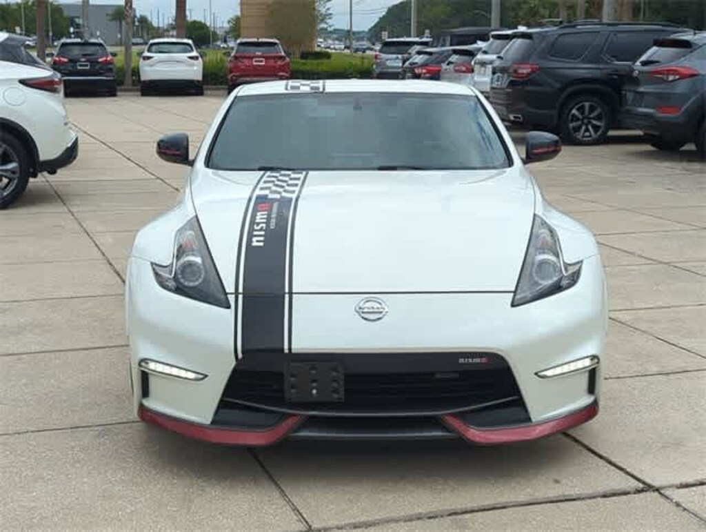 This 2017 Nissan 370Z NISMO Tech in Pearl White, features Navigation System, 4-Wheel Disc Brakes, 8 Speakers, ABS brakes, Air Conditioning, Alloy wheels, AM/FM radio: SiriusXM, Anti-whiplash front head restraints, Auto-dimming Rear-View mirror, Automatic temperature control, Brake assist, Bumpers: body-color, CD player, Delay-off headlights, Driver door bin, Driver vanity mirror, Dual front impact airbags, Dual front side impact airbags, DVD-Audio, Electronic Stability Control, Exterior Parking Camera Rear, Four wheel independent suspension, Front anti-roll bar, Front Bucket Seats, Front Center Armrest, Front reading lights, Garage door transmitter: HomeLink, Heated door mirrors, High intensity discharge headlights: Bi-Xenon, Illuminated entry, Leather Shift Knob, Low tire pressure warning, Occupant sensing airbag, Outside temperature display, Overhead airbag, Panic alarm, Passenger door bin, Passenger vanity mirror, Power door mirrors, Power steering, Power windows, Radio data system, Radio: AM/FM/CD/XM Bose Audio System w/6 Speakers, Rear anti-roll bar, Rear window defroster, RECARO Leather Appointed Seat Trim w/Alcantara, Remote keyless entry, Security system, Speed control, Speed-sensing steering, Spoiler, Steering wheel mounted audio controls, Tachometer, Tilt steering wheel, Traction control, Trip computer, Variably intermittent wipers, Voltmeter, and Wheels: 19 x 9.5 Fr/19 x 10.5 Rr RAYS Alloy: