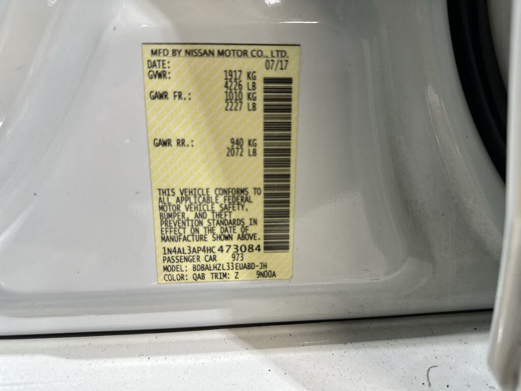2017 Nissan Altima 2.5 SR Pearl White CVT with Xtronic, 6 Speakers, AM/FM/CD/MP3 Audio System, Remote Engine Start, Remote keyless entry, Wheels: 18 x 7.5 Sport Aluminum Alloy.