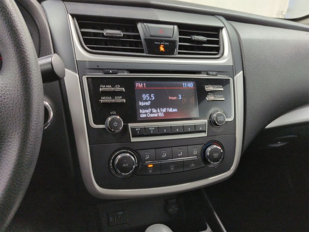 Altima 2.5 S is nicely equipped with Power Driver Seat Package (6-Way Power Drivers Seat), CVT with Xtronic, 16 x 7.0 Steel w/Full Covers Wheels, 4-Wheel Disc Brakes, 6 Speakers, ABS brakes, Air Conditioning, AM/FM radio, AM/FM/CD/MP3 Audio System, Brake assist, Bumpers: body-color, CD player, Chrome Bumper Protector, Cloth Seat Trim, Delay-off headlights, Driver door bin, Driver vanity mirror, Dual front impact airbags, Dual front side impact airbags, Electronic Stability Control, Exterior Parking Camera Rear, Floor Mats Plus Trunk Mat (5-Piece Carpeted), Four wheel independent suspension, Front anti-roll bar, Front Bucket Seats, Front Center Armrest w/Storage, Front reading lights, Fully automatic headlights, Illuminated entry, Low tire pressure warning, Occupant sensing airbag, Outside temperature display, Overhead airbag, Overhead console, Panic alarm, Passenger door bin, Passenger vanity mirror, Power door mirrors, Power steering, Power windows, Radio data system, Rear anti-roll bar, Rear reading lights, Rear seat center armrest, Rear window defroster, Remote keyless entry, Security system, Speed control, Speed-sensing steering, Speed-Sensitive Wipers, Splash Guards, Split folding rear seat, Steering wheel mounted audio controls, Tachometer, Telescoping steering wheel, Tilt steering wheel, Traction control, Trip computer, and Variably intermittent wipers.