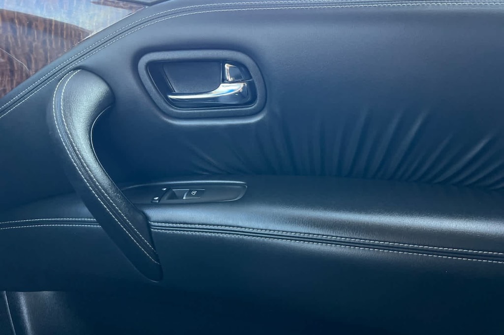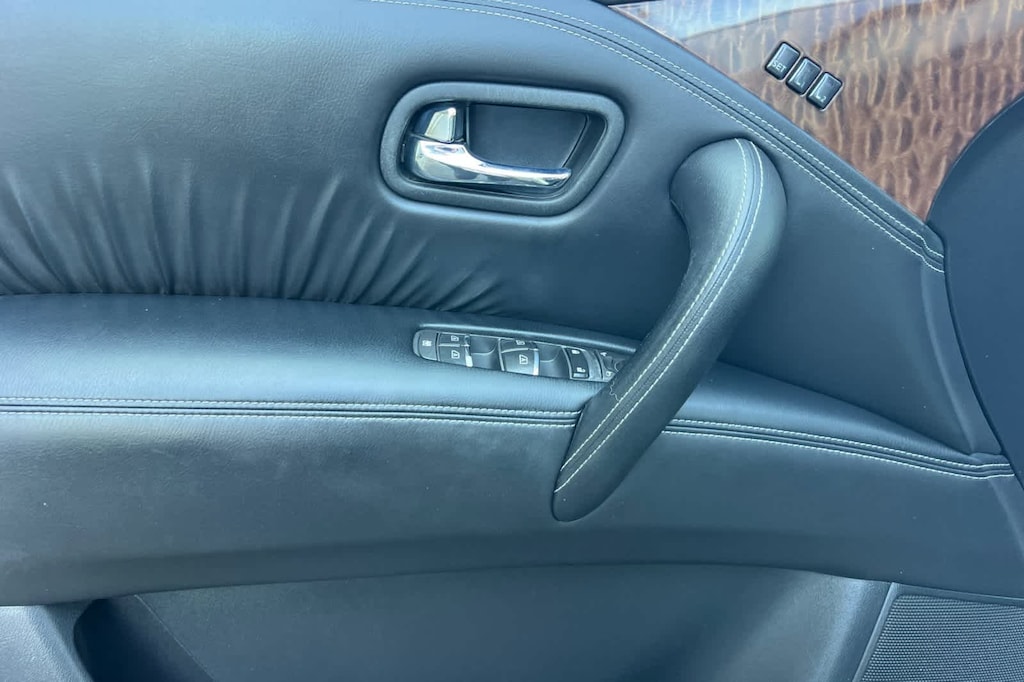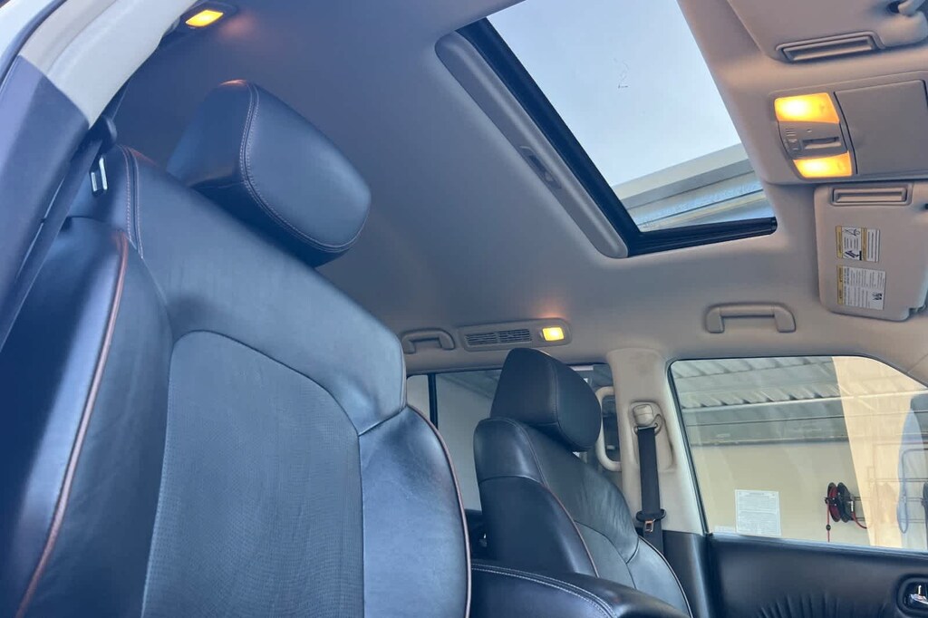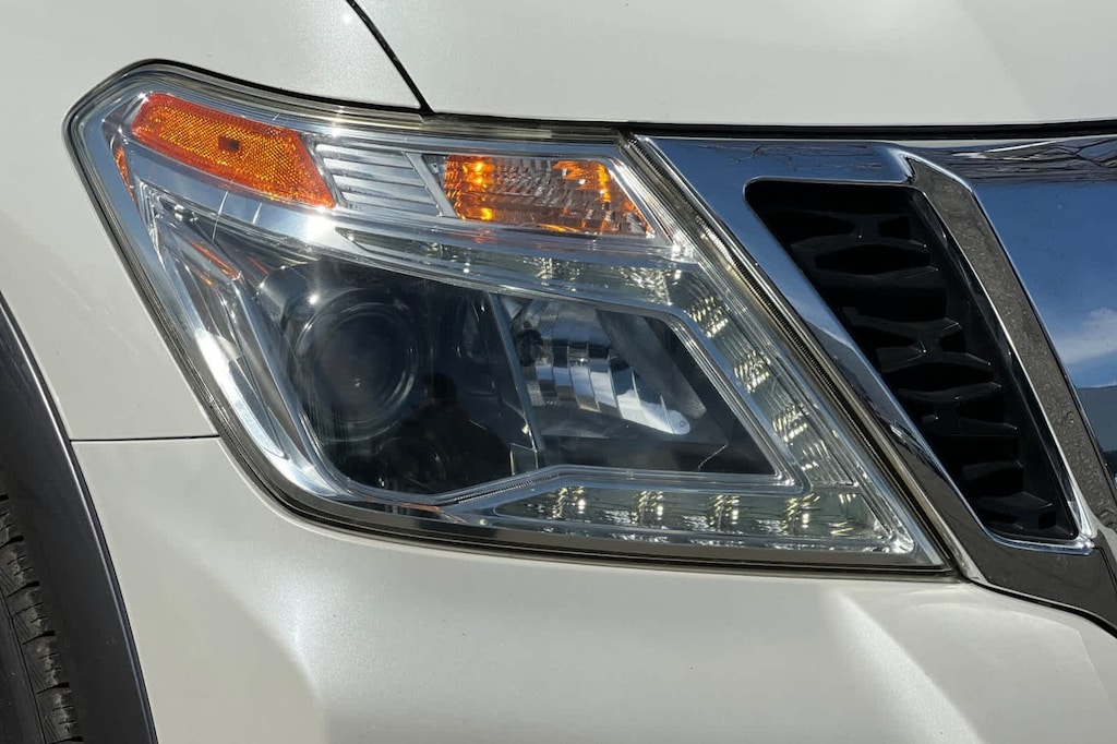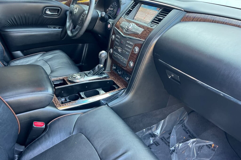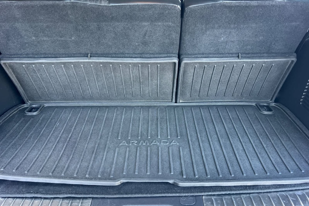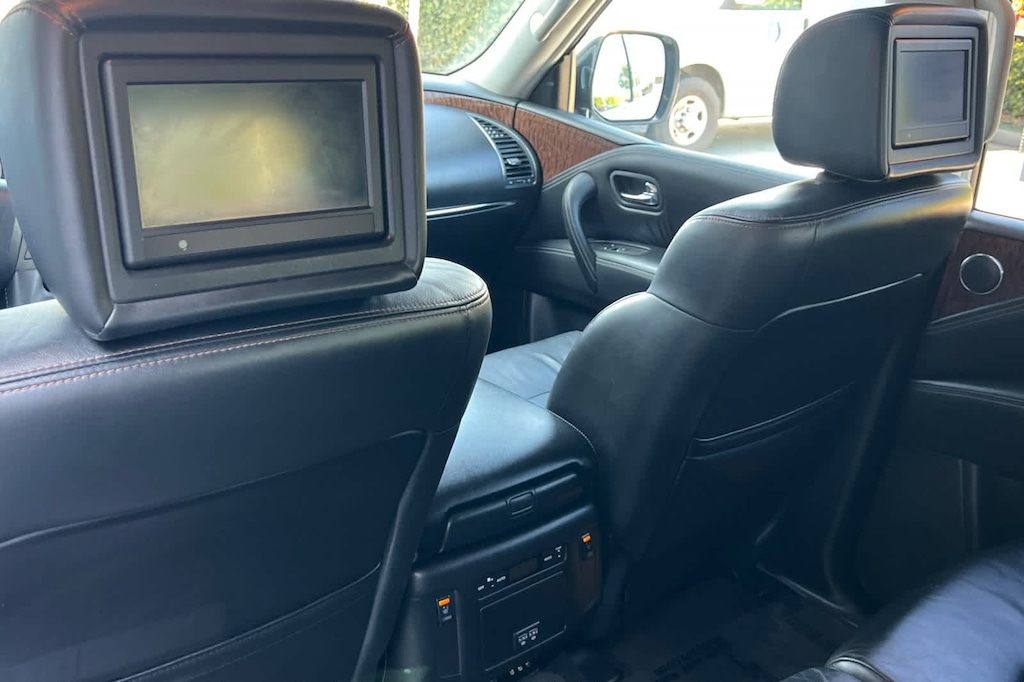 This Armada Platinum is finished in the Pearl White exterior paint and Charcoal Leather interior.