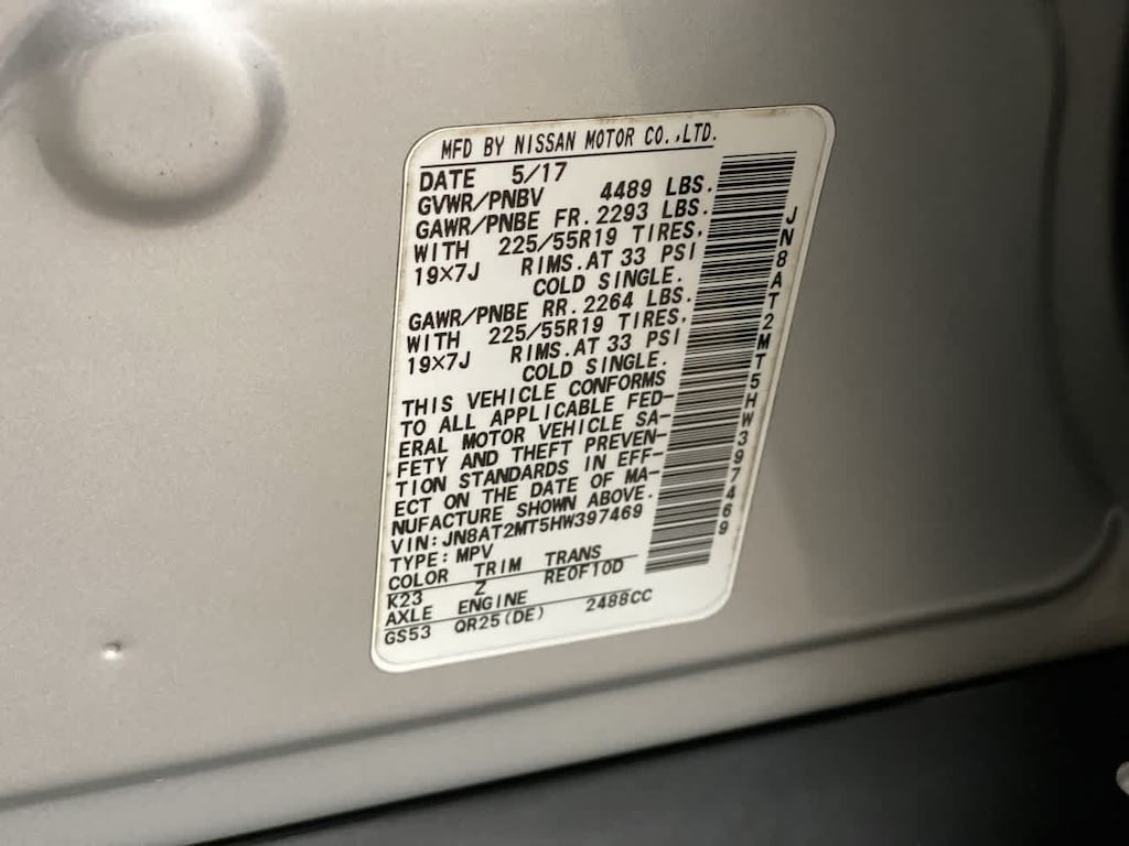 Leather Seats, Navigation, Power Liftgate, Heated Driver Seat, Back-Up Camera, Premium Sound System, Satellite Radio, iPod/MP3 Input, Onboard Communications System, Remote Engine Start, Dual Zone A/C, Blind Spot Monitor, Brake Actuated Limited Slip Differential, Hands-Free Liftgate, Cross-Traffic Alert. Nissan SL with Brilliant Silver exterior and Platinum Reserve interior features a 4 Cylinder Engine with 170 HP at 6000 RPM*.
