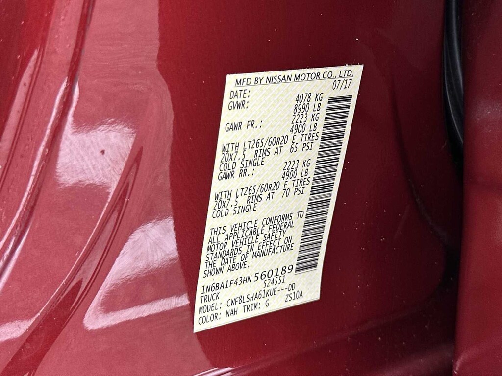 Recent Arrival! HOME OF THE LIFETIME WARRANTY! BUY WITH CONFIDENCE! WE LOVE TRADES! HASSLE FREE FINANCE PLANS FOR EVERYONE! PLEASE CALL TO ENSURE AVAILABLITY AS OUR INVENTORY CHANGES BY THE HOUR. Odometer is 8989 miles below market average! **TOUCHLESS DELIVERY - BUY FROM CONVENIENCE OF YOUR HOME**, HTTPS://WWW.DRIVEWAY.COM, HTTPS://WWW.CHEVYOFWESLEYCHAPEL.COM, New Feature, 110V Outlet In Bed, 20 Painted Alloy Wheels, 3.916 Axle Ratio, 4-Wheel Disc Brakes, 6 Speaker System, 6 Speakers, ABS brakes, Air Conditioning, AM/FM radio: SiriusXM, Auto Dual Zone HVAC, Auto On/Off Headlights, Auto-Dimming Rear-View Mirror, Blind Spot Warning w/Rear Cross Traffic Alert, Block heater, Brake assist, Bumpers: chrome, Carpet Floor Mats, CD player, Chrome Interior Door Locks, Cloth Seat Trim w/Vinyl Stain-Resistant Bolsters, Convex Spotter Mirror, Driver door bin, Driver vanity mirror, Dual front impact airbags, Dual front side impact airbags, Electronic Stability Control, Electronic Tailgate Lock, Flat Floor Storage Box, Fog Lamps, Front & Rear Parking Sensors, Front anti-roll bar, Front Center Armrest w/Storage, Front reading lights, Front Split Bench Seat (40/20/40), Front wheel independent suspension, Heated door mirrors, Heated Front Captains Seats w/Center Console, Illuminated entry, Intelligent Key System, Leather Seat Trim, Leather Wrapped Steering Wheel, LED Under Rail Bed Lighting, Low tire pressure warning, Occupant sensing airbag, Outside temperature display, Overhead airbag, Overhead console, Painted Rear Bumper, Panic alarm, Passenger door bin, Passenger vanity mirror, Power door mirrors, Power Slide Rear Window w/Defogger, Power steering, Power windows, Radio data system, Radio: NissanConnect w/Navigation & Mobile Apps, Radio: NissanConnect w/SiriusXM & Mobile Apps, Rain Sensing Wipers, Rear anti-roll bar, Rear HVAC Vents, Rear seat center armrest, Rear step bumper, Rear window defroster, Rearview Monitor, Remote keyless entry, Security system, Siri Eyes Free, Speed control, Speed-sensing steering, Speed-Sensitive Wipers, Splash Guards, Split folding rear seat, Spray-In Bedliner, Steering wheel mounted audio controls, Step Rails, SV Comfort & Convenience Package, SV Utility Package, Tachometer, Tailgate Area Illumination, Telescoping steering wheel, Tilt steering wheel, Traction control, Turn signal indicator mirrors, Universal Garage Door Opener, Utilitrack System w/4 Tie-Down Cleats, Variably intermittent wipers, Voltmeter, Wheels: 17 x 7.5 Silver Styled Steel.