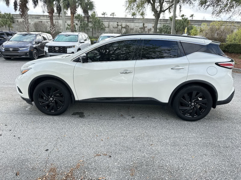 Murano SL, 4D Sport Utility, 3.5L V6 DOHC 24V, CVT with Xtronic, FWD, Pearl White, Graphite Leather, Black Badges, Black Front & Rear Lower Bumper Accents, Black License Plate Finisher, Black Outside Mirrors, Black Roof Rails, Black Side Body Molding, Black Splash Guards, Black V-Motion Grille, Illuminated Kickplates, Midnight Edition Package, Wheels: 20 Midnight Black Aluminum-Alloy. 21/28 City/Highway MPG
